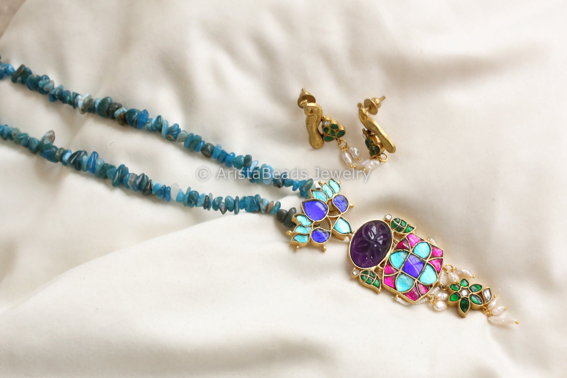 Handmade Semiprecious Fusion Jadau Necklace Set(103-01)