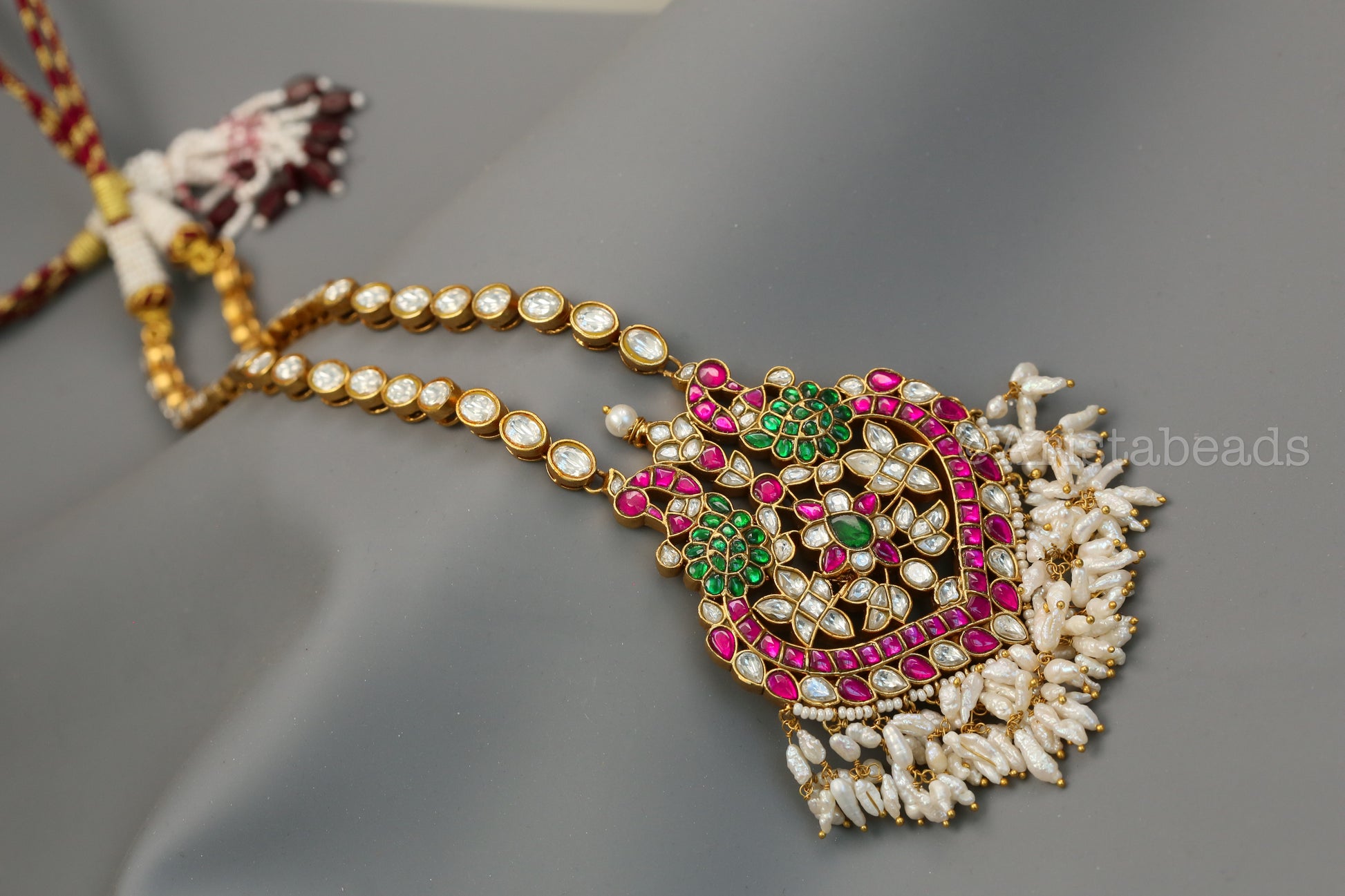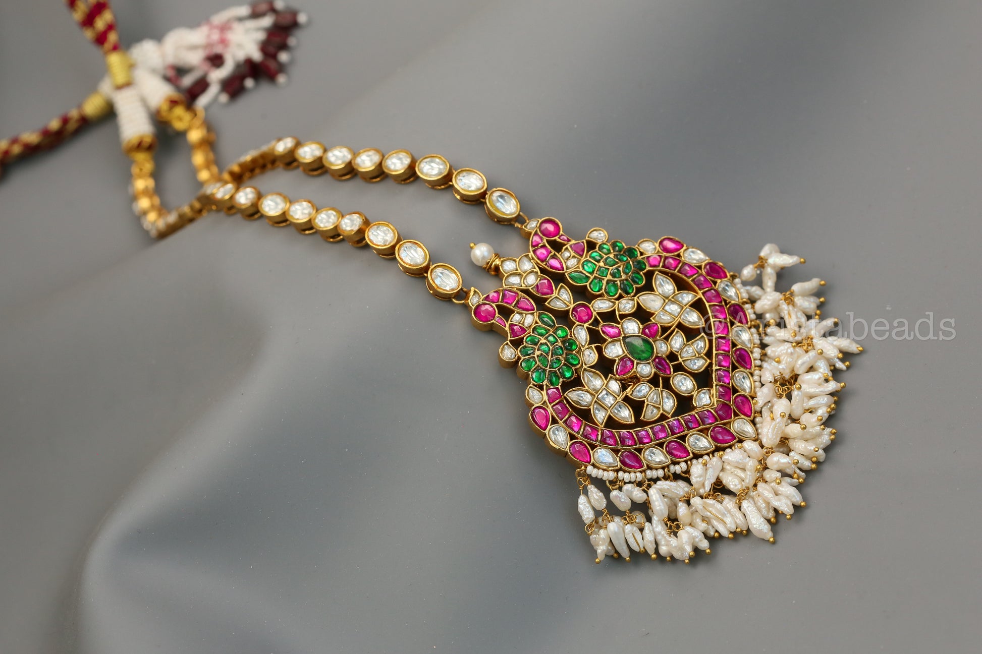 Real Pearls Sunehri Jadau Necklace (104-70) - Ruby