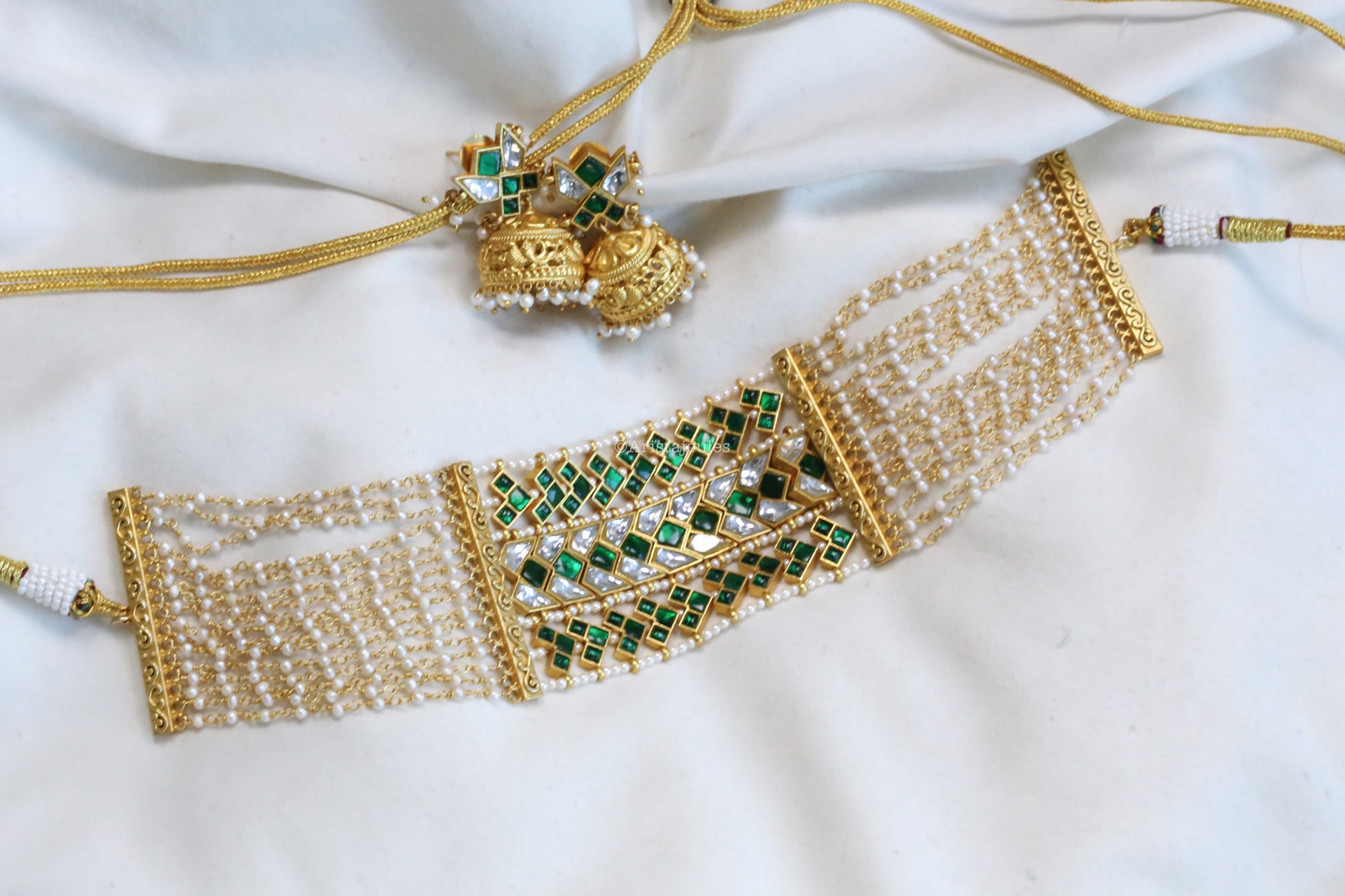 Henna Premium Jadau Choker Set - Real Pearls