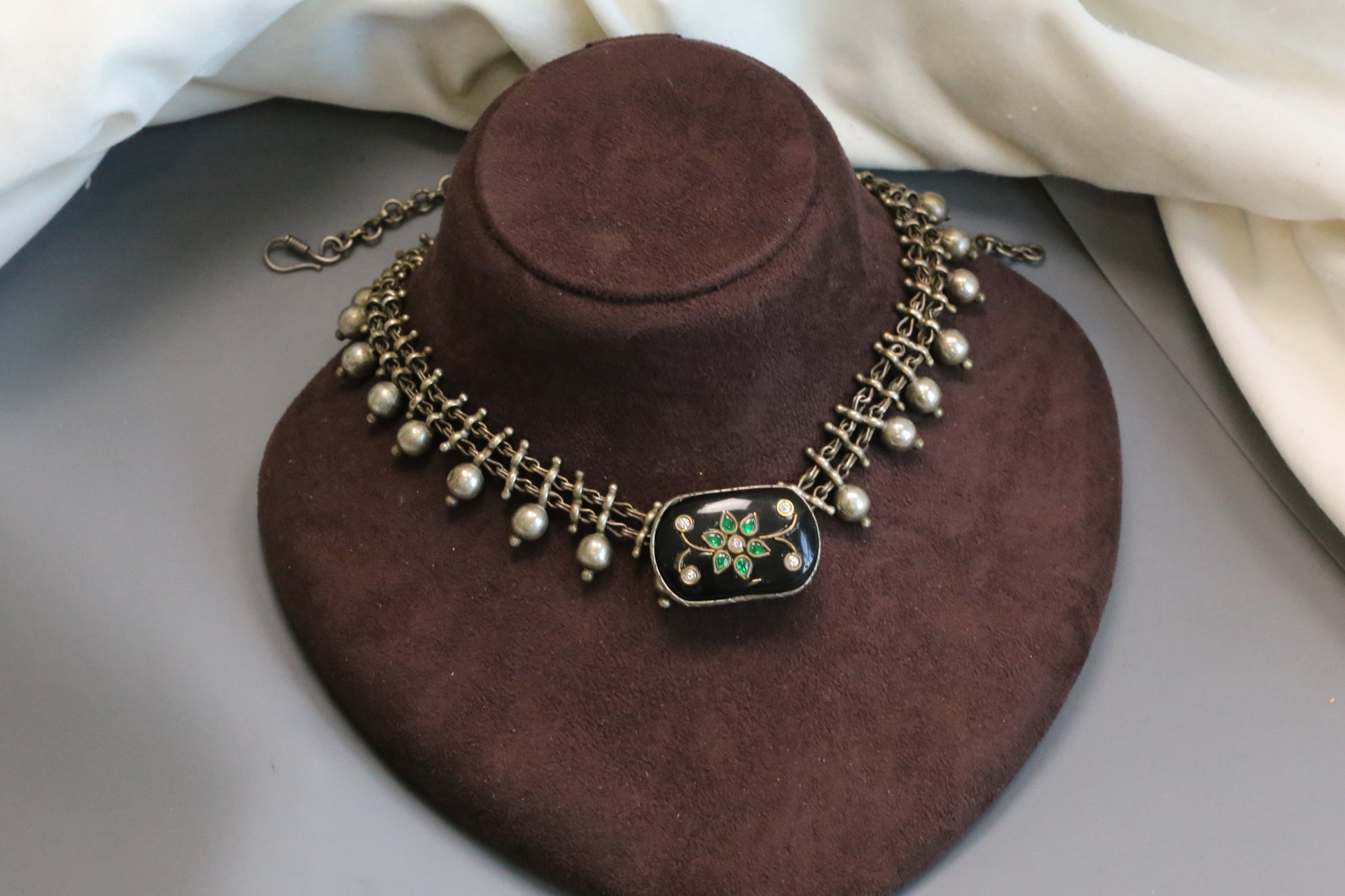 Inlay Kundan Oxidized Necklace -Black