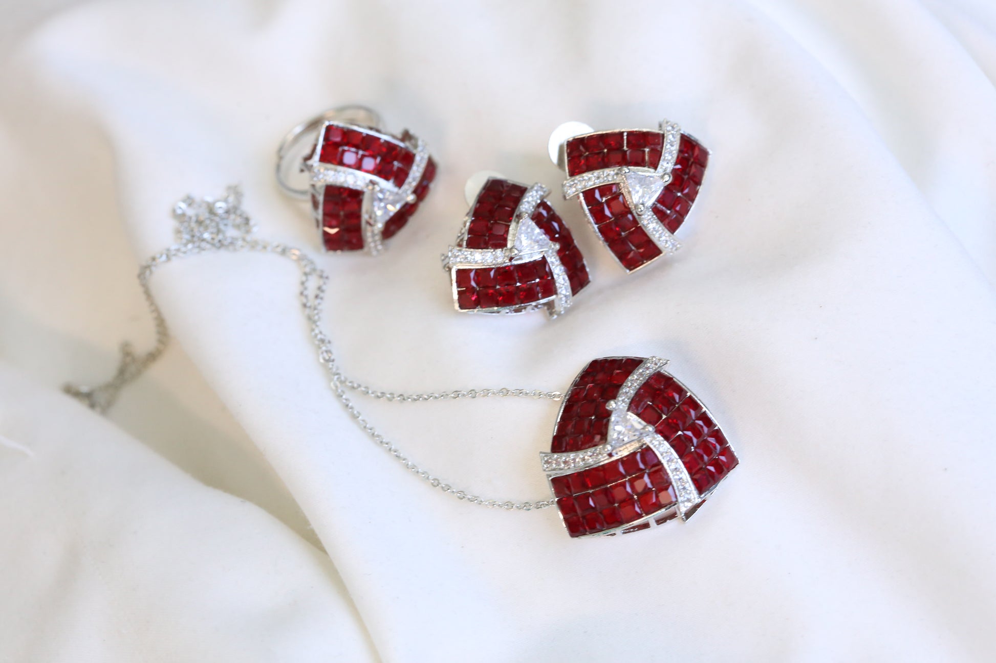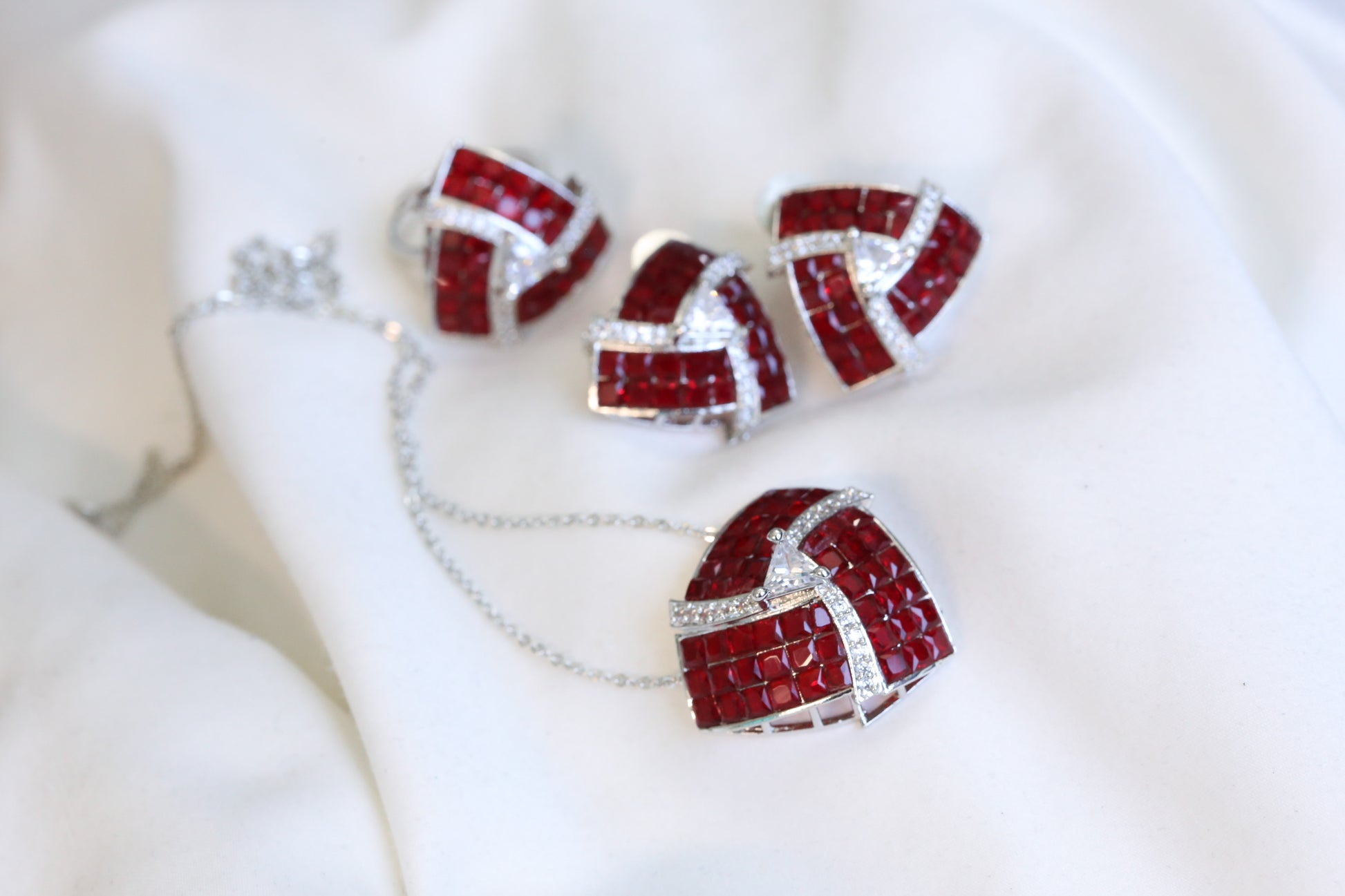 Invisible Stone Setting Necklace Set - Red
