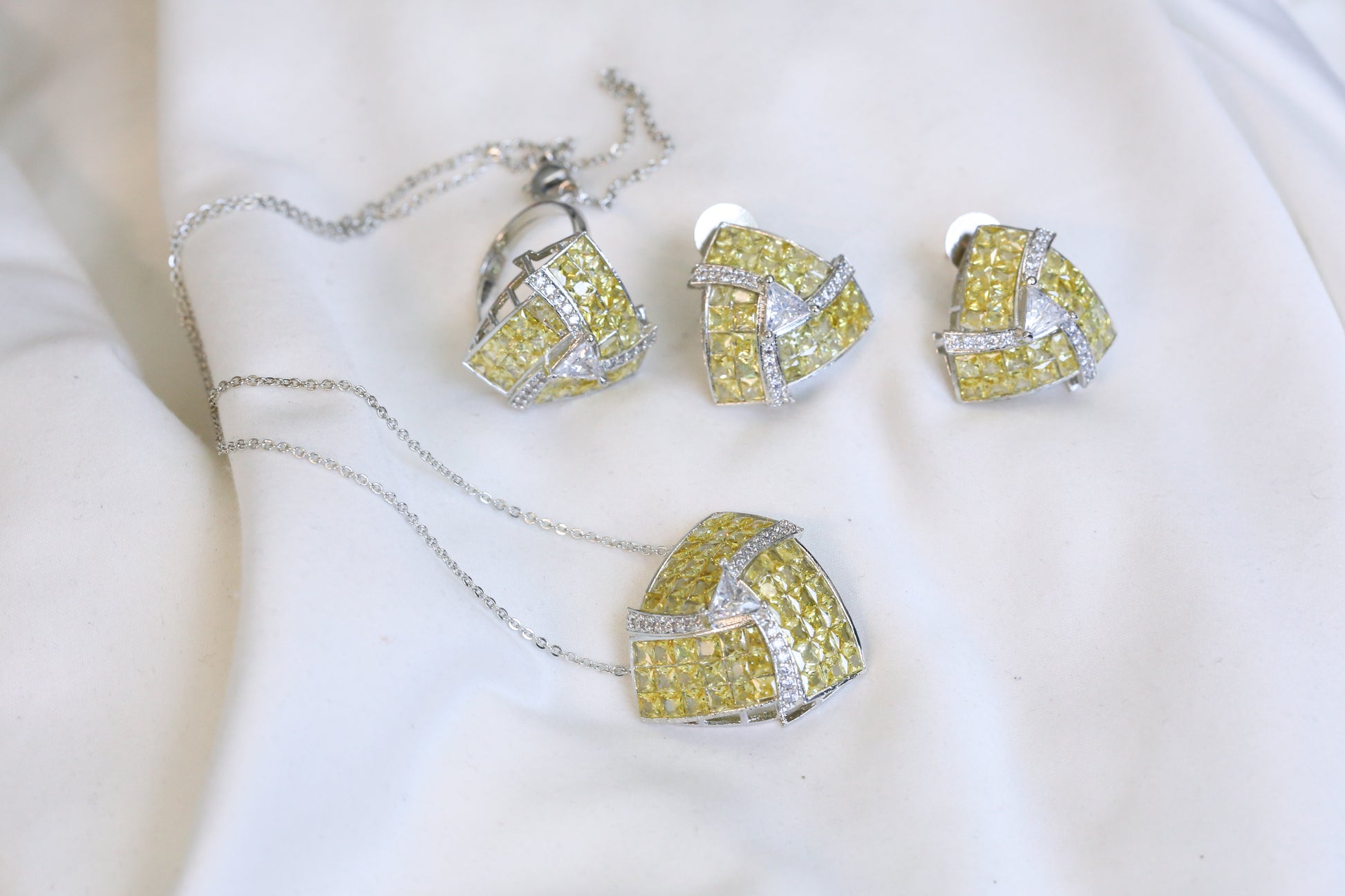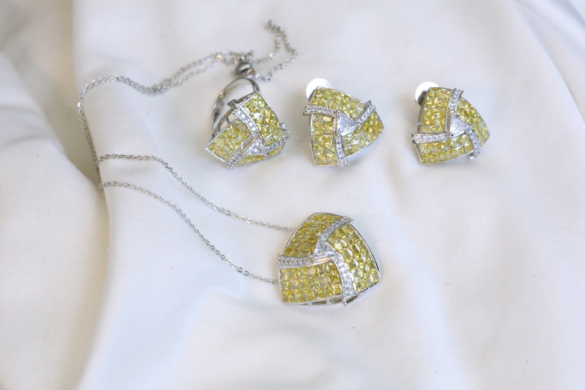 Invisible Stone Setting Necklace Set -Yellow