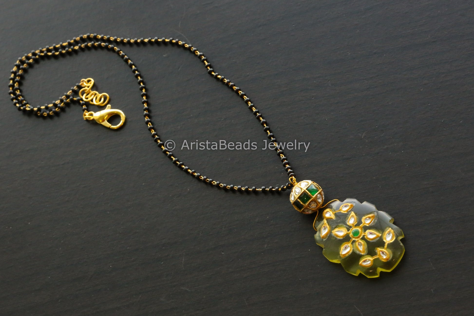 Jadau Ball Black Chain With Lemon Jadau Stone Drop