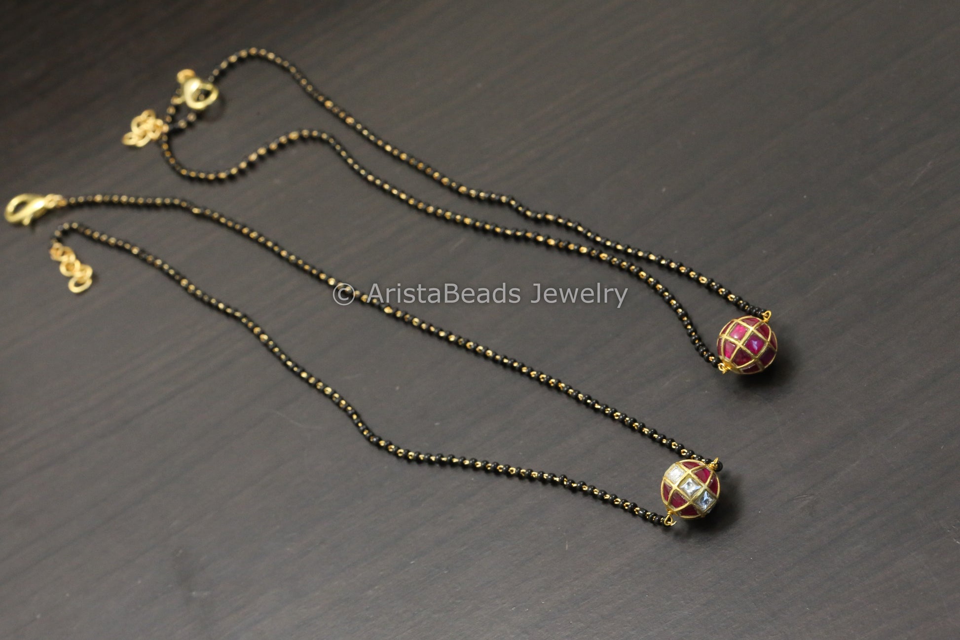 Jadau Black Bead Necklace - Ruby