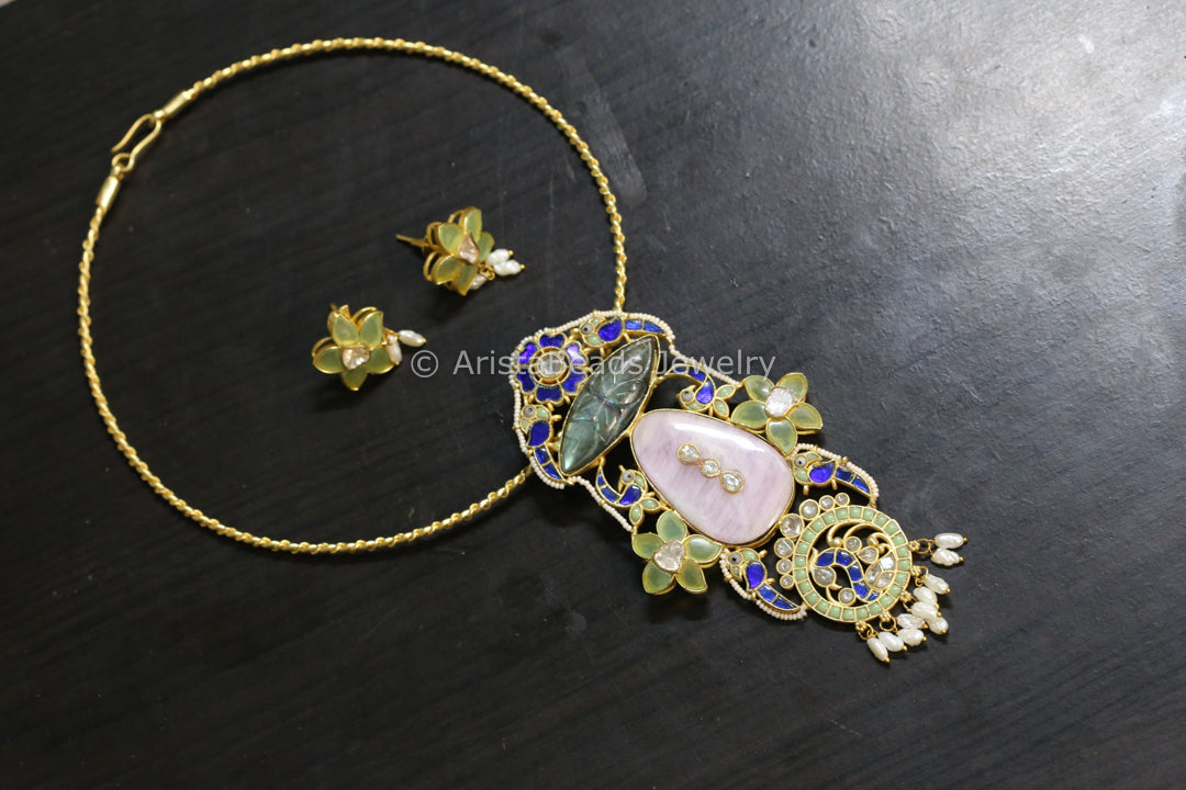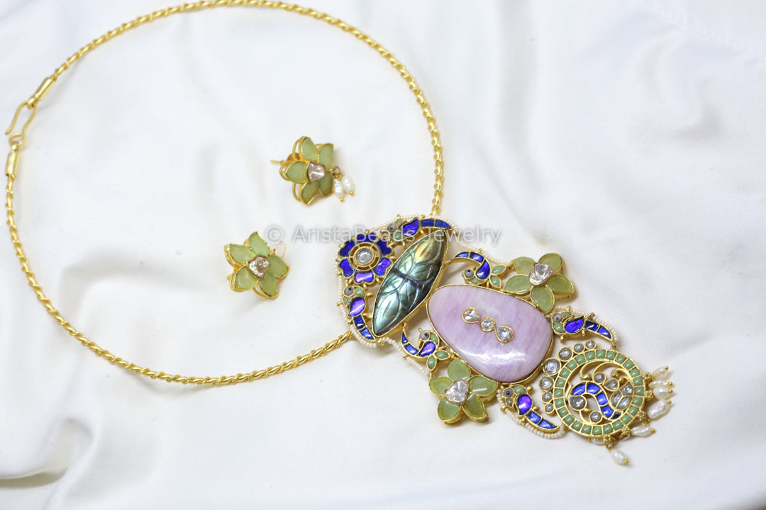 Jadau Fusion Green Blue Pendant Set - Labradorite & Chalcedony