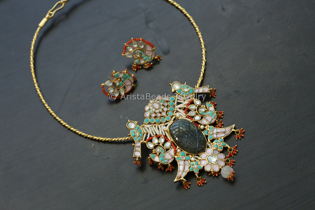 Jadau Fusion Necklace - Carved Labradorite (Removable)
