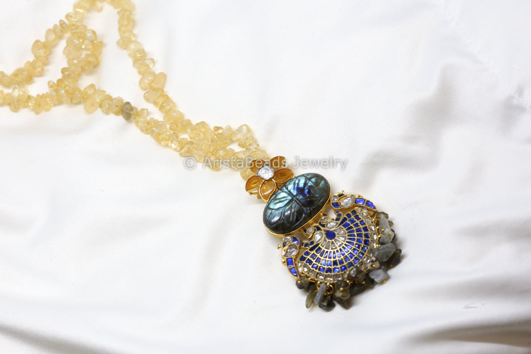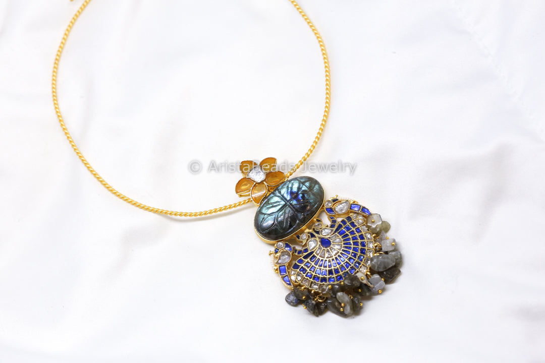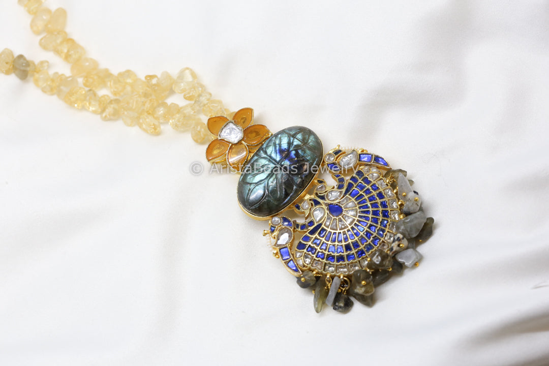 Jadau Fusion Yellow Blue Pendant (Removable)