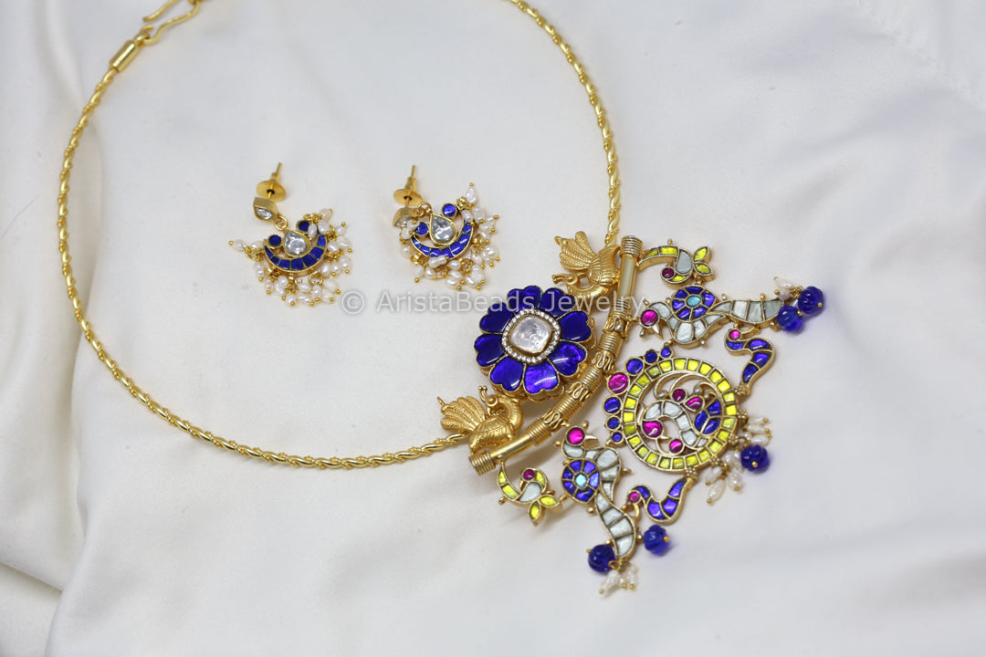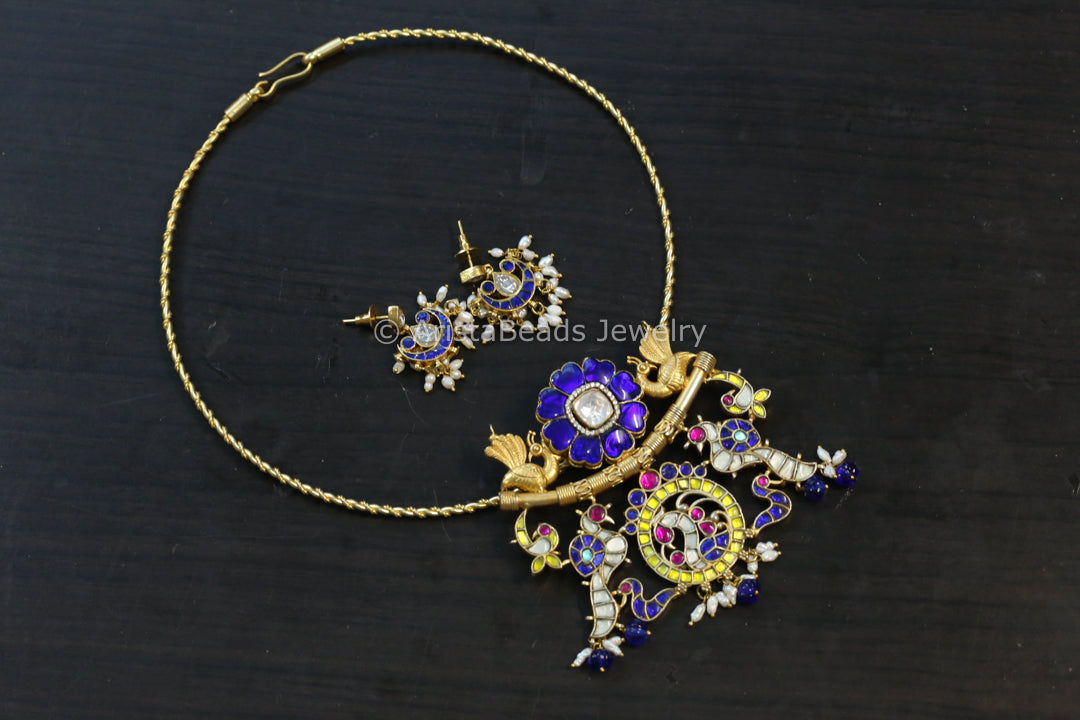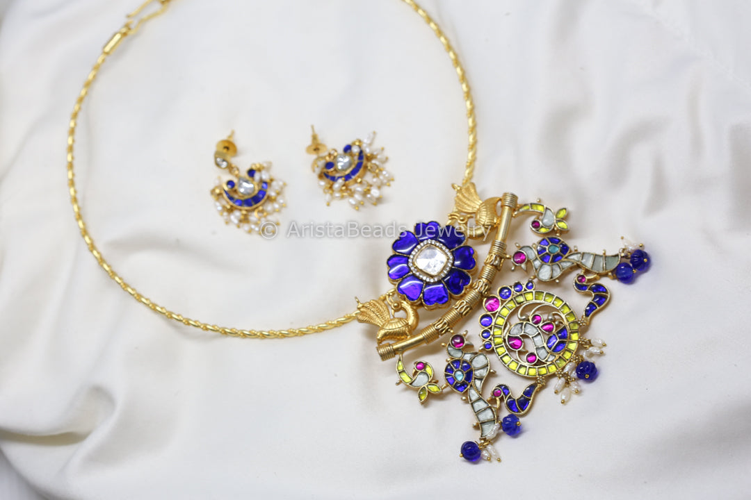 Jadau Fusion Yellow Blue Pendant Set (Removable)