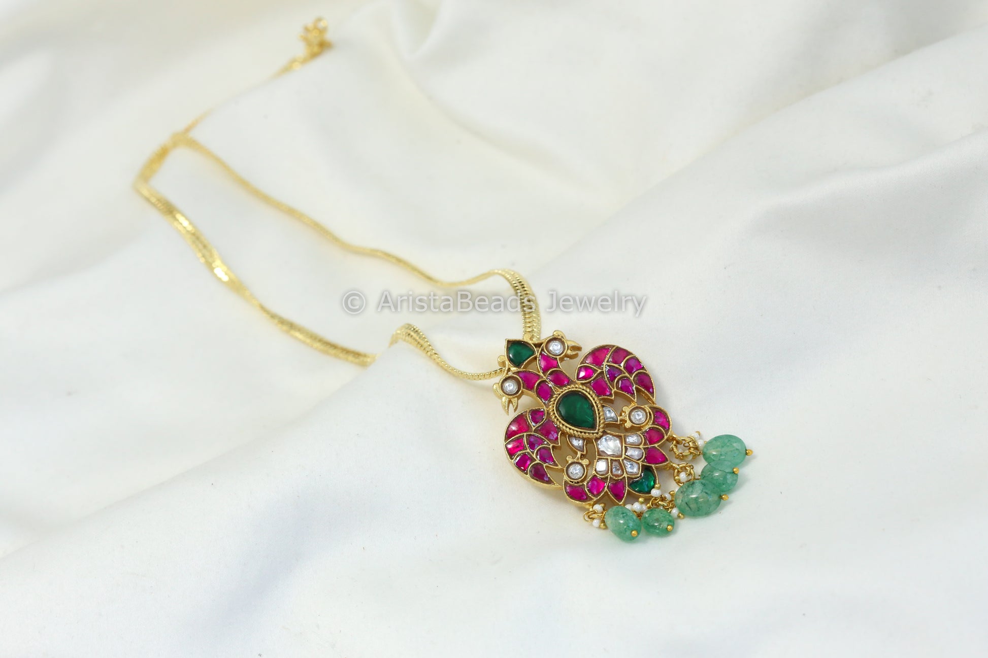Jadau Garuda Pendant & Gold Chain - Ruby