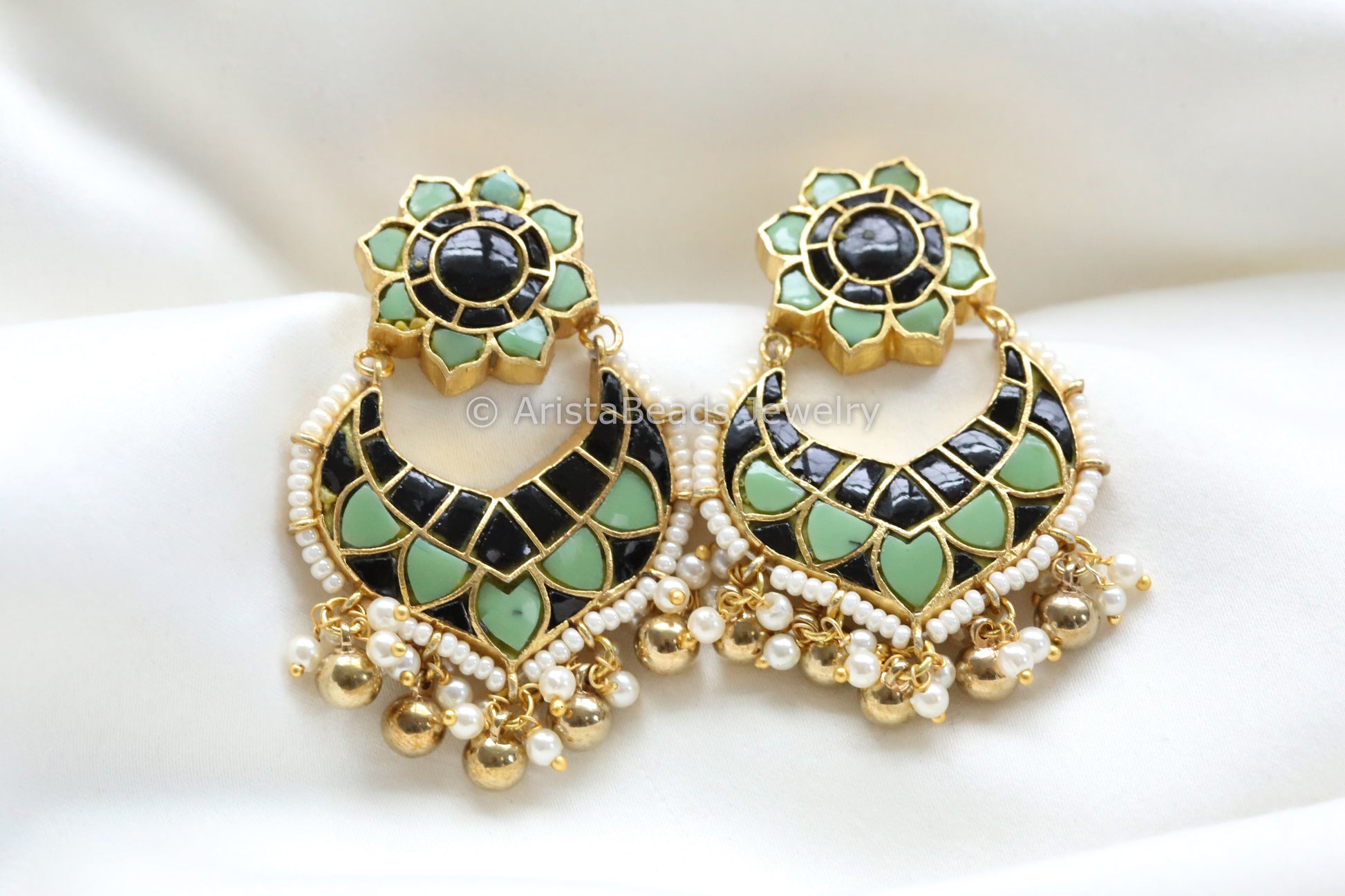 Jadau Kundan Earrings - Green Turquoise & Black Onyx