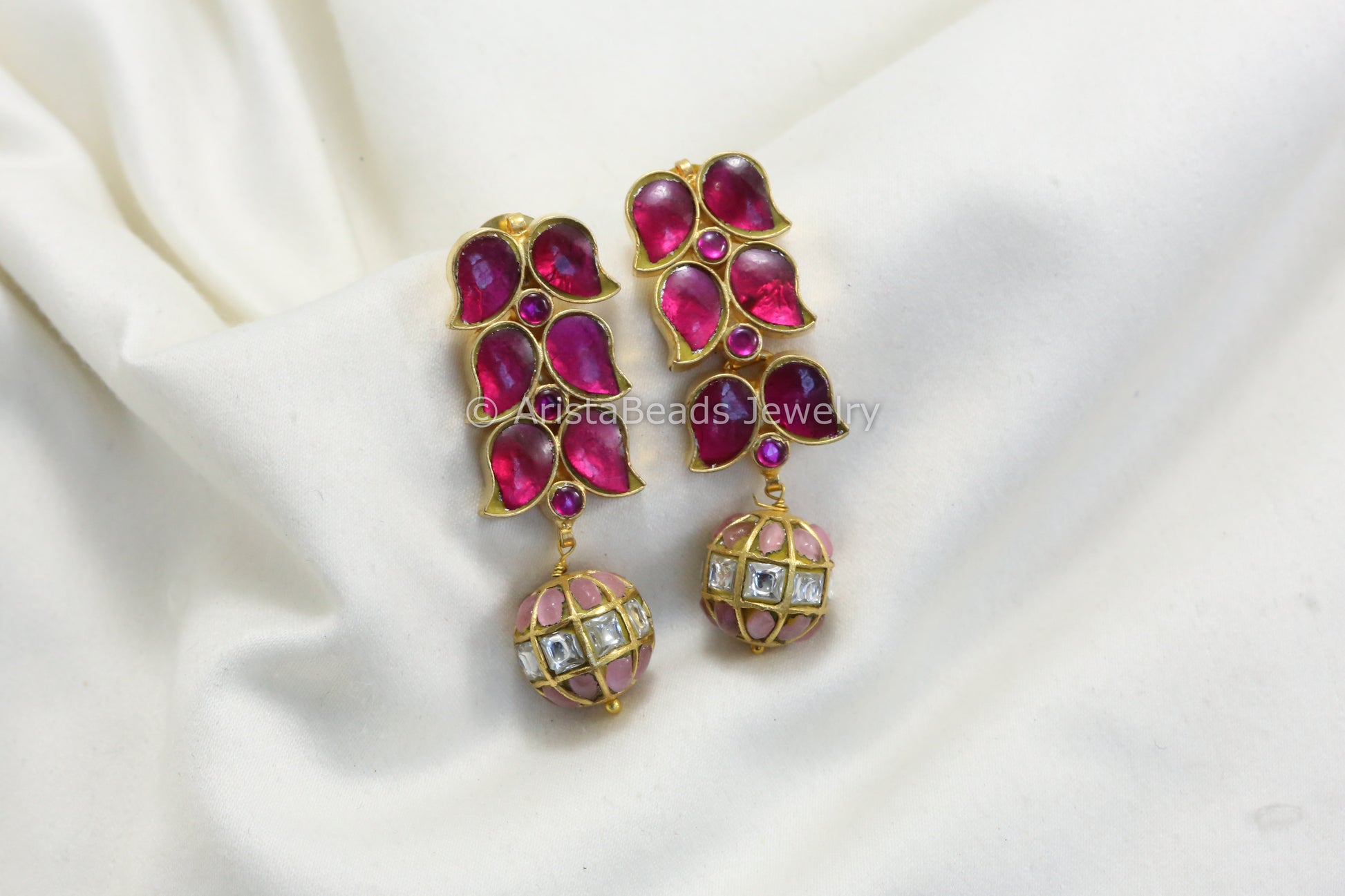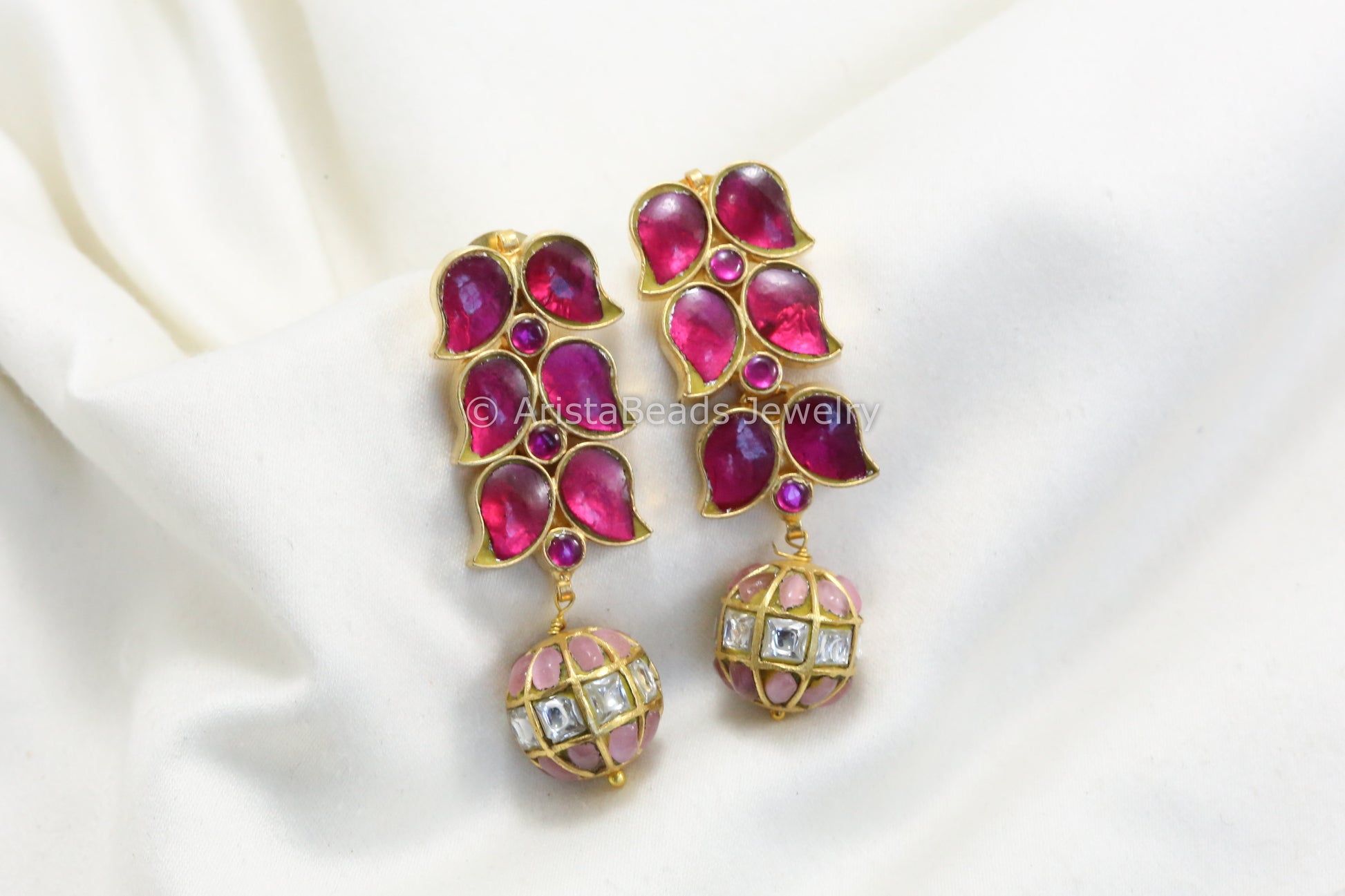 Jadau Kundan Earrings -Ruby Pink & Clear