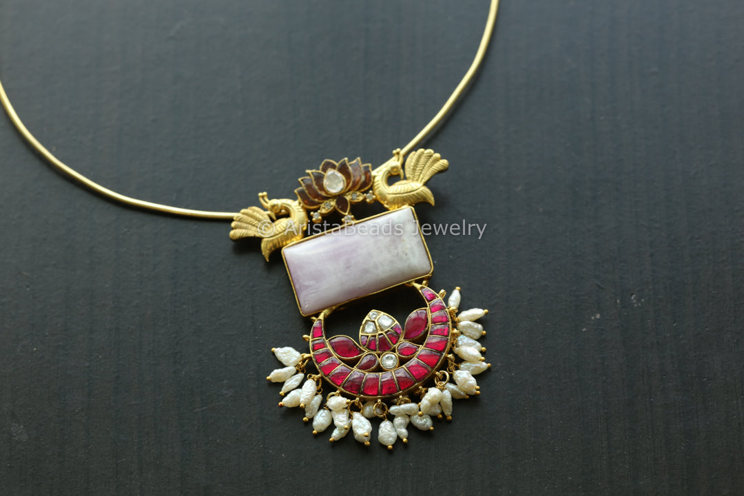 Jadau Kundan Fusion Necklace - Purple Chalcedony (Removable Hasli)