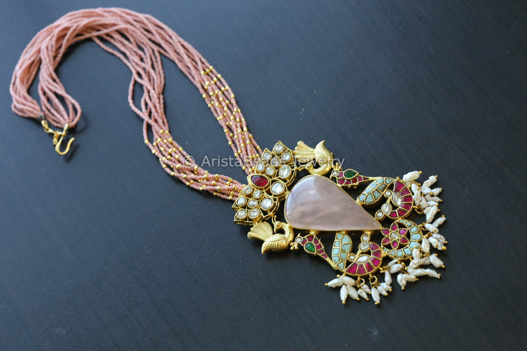 Jadau Kundan Fusion Necklace - Rose Quartz
