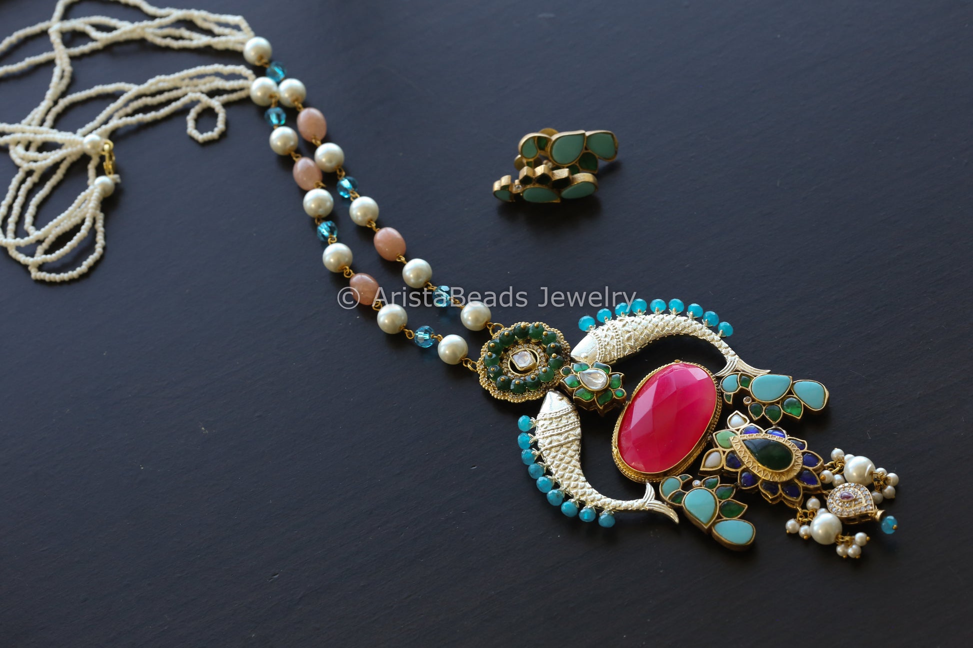 Jadau Kundan Fusion Necklace Set - Pink Agate