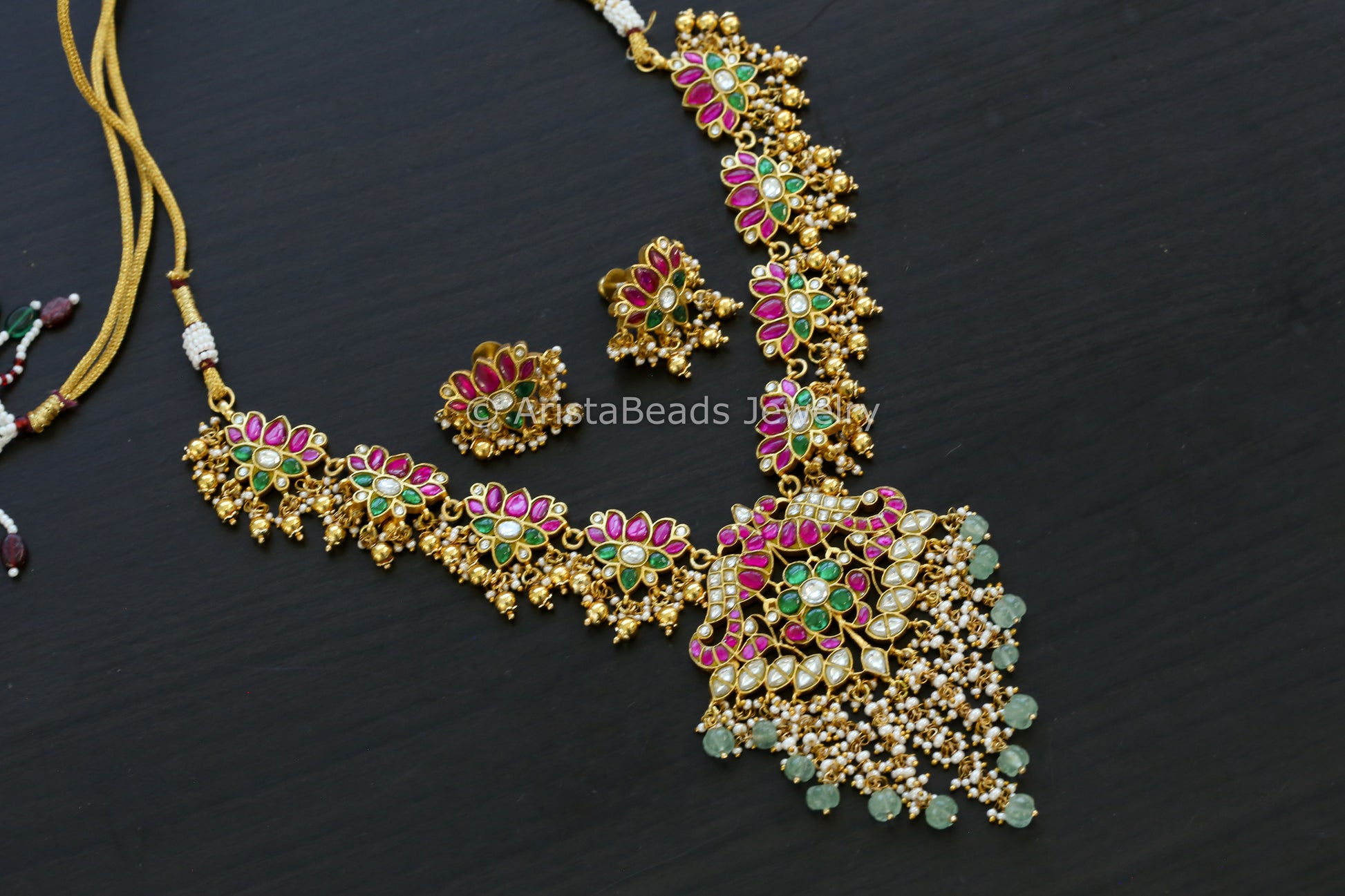Jadau Kundan Lotus Guttapusalu Necklace Set