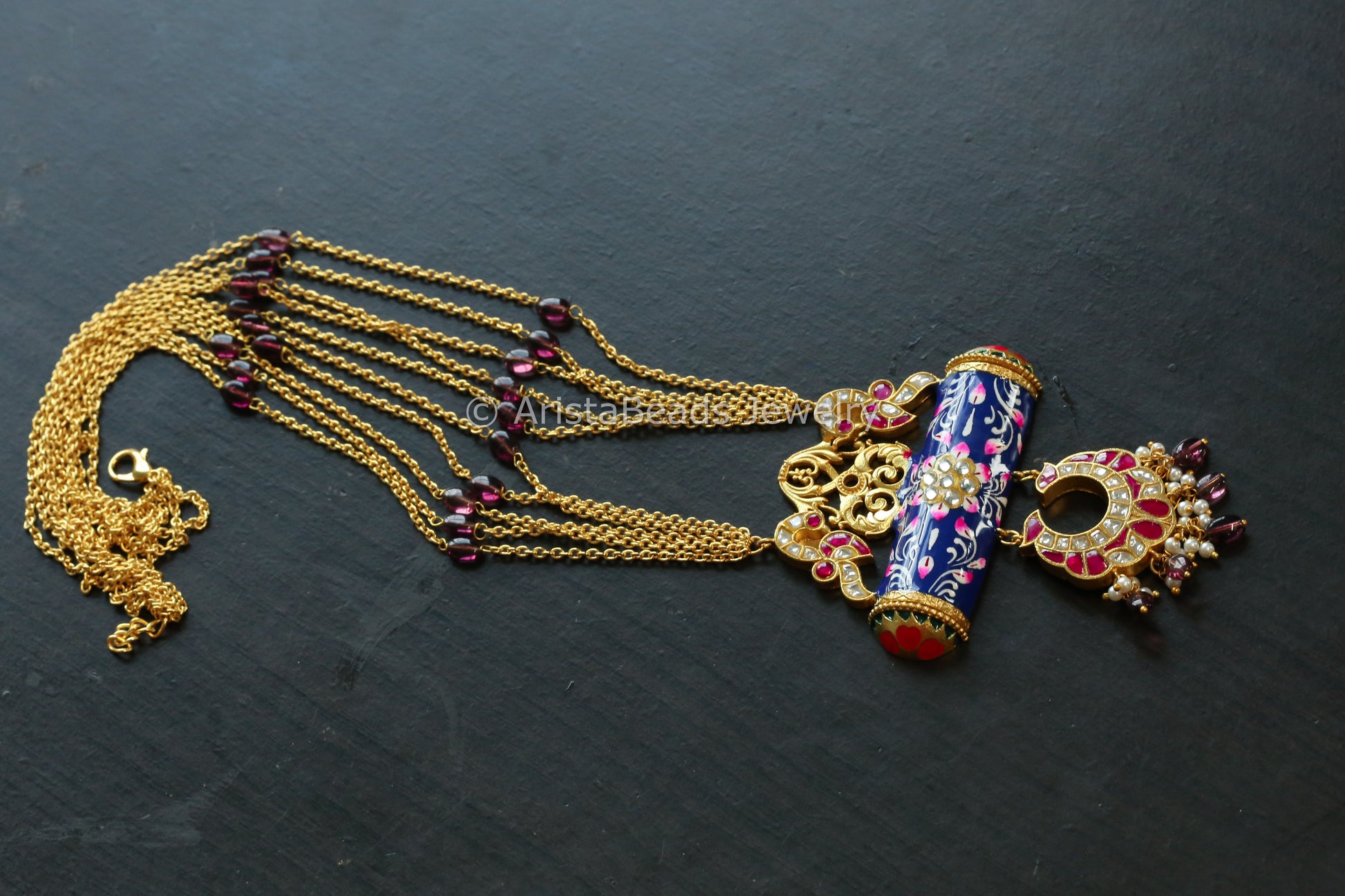 Jadau Kundan Meenakali Tabeez Necklace - Ruby & Blue
