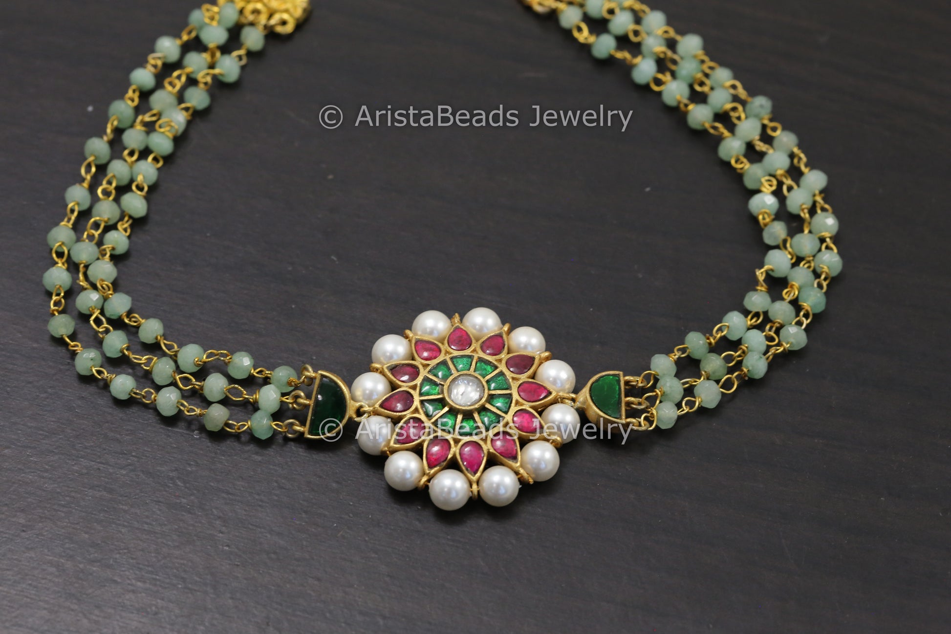Jadau Kundan Multicolor Choker Necklace - Green Beads