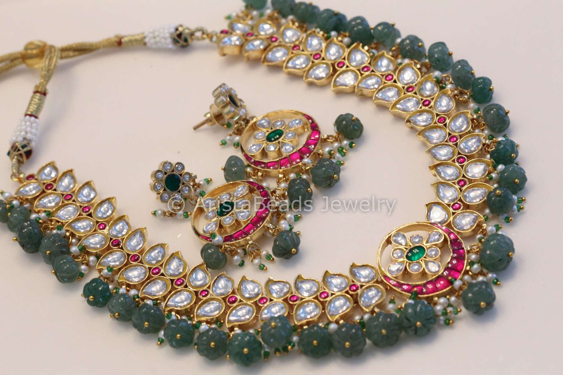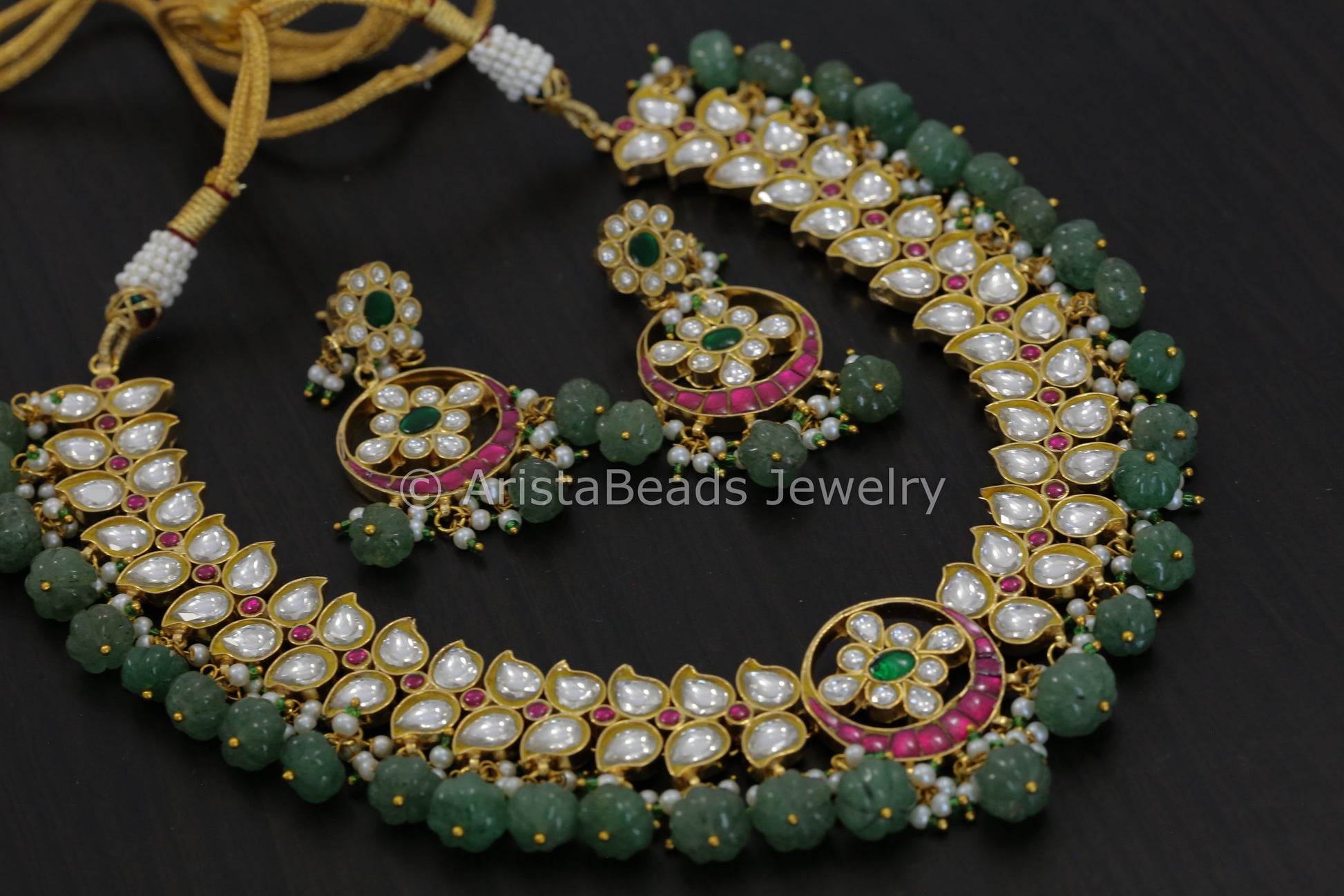 Jadau Kundan Necklace Set - Fluorite Melon Drops