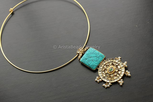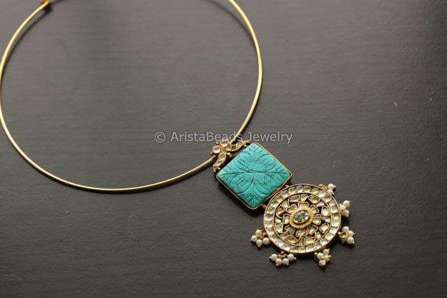 Jadau Kundan Pendant Hasli Necklace - Turquoise Cab