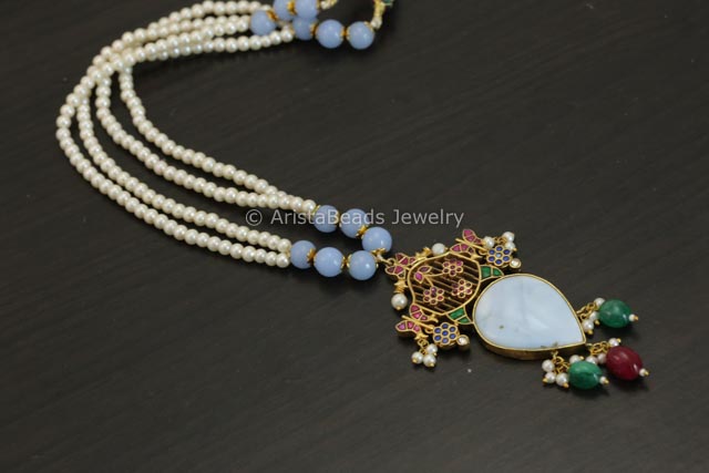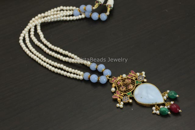 Jadau Kundan Pendant Necklace - Larimar Cab