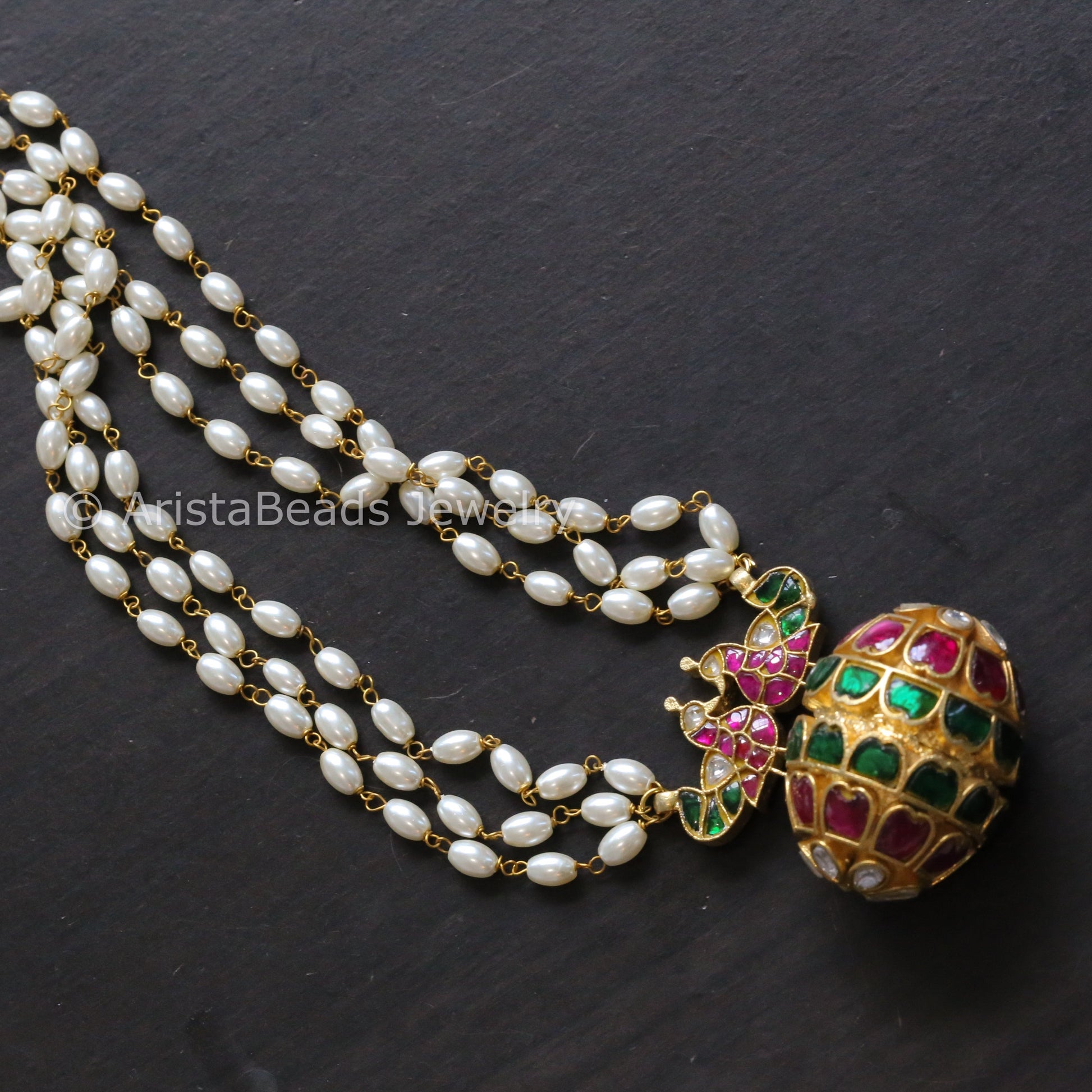Jadau Kundan Rice Pearl Peacock Necklace