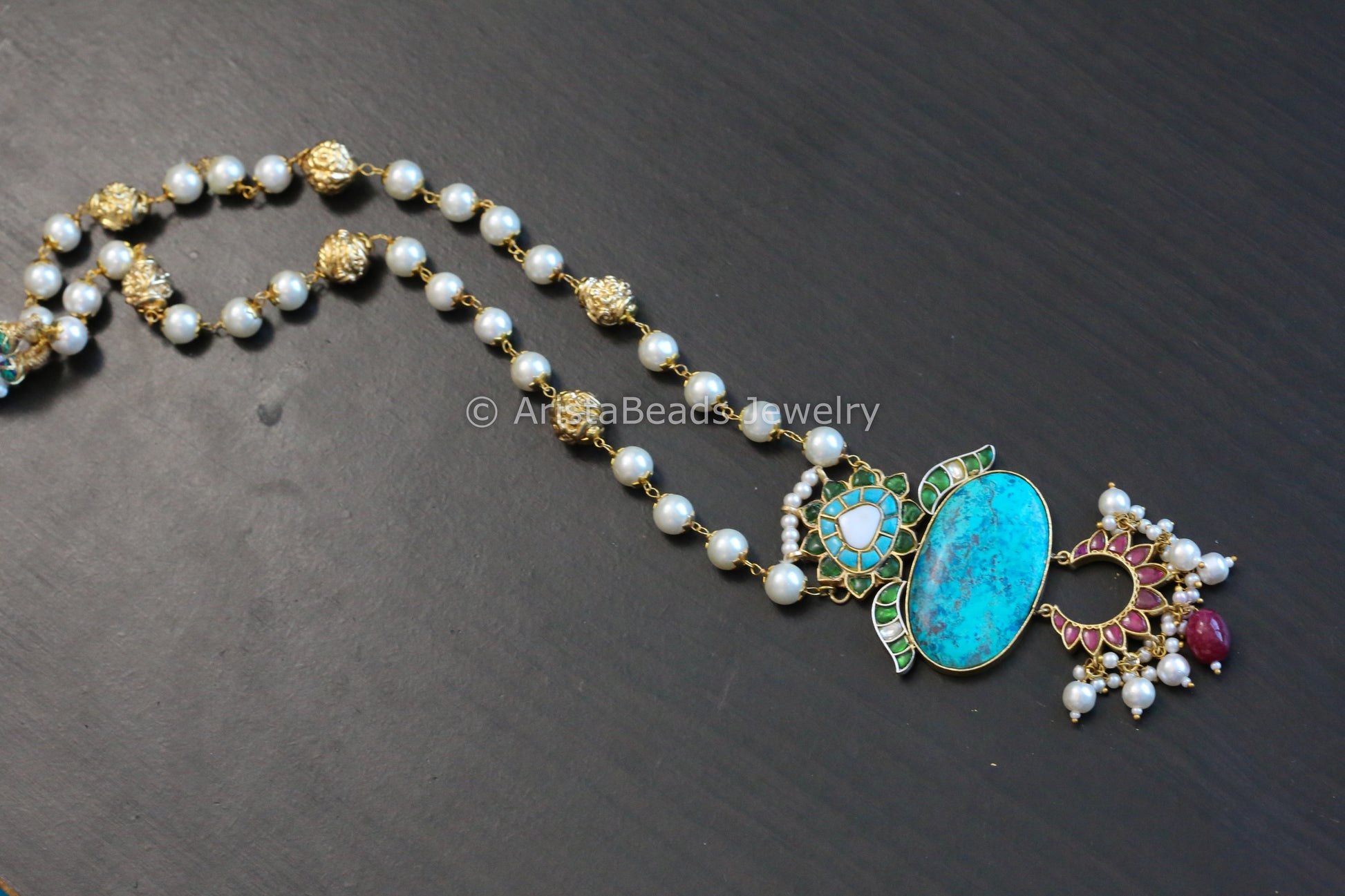 Jadau Kundan & Turquoise Cab Stone Necklace
