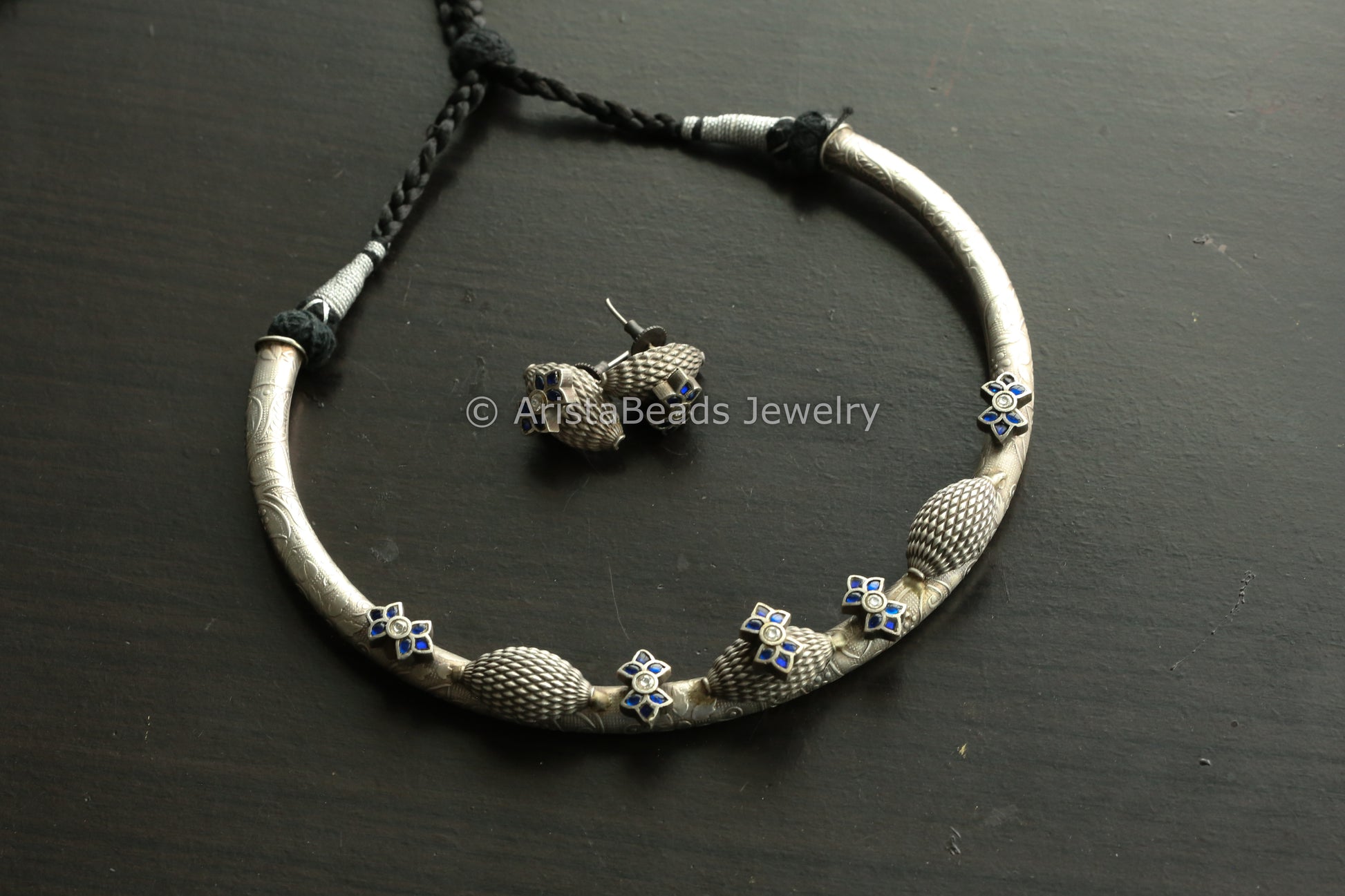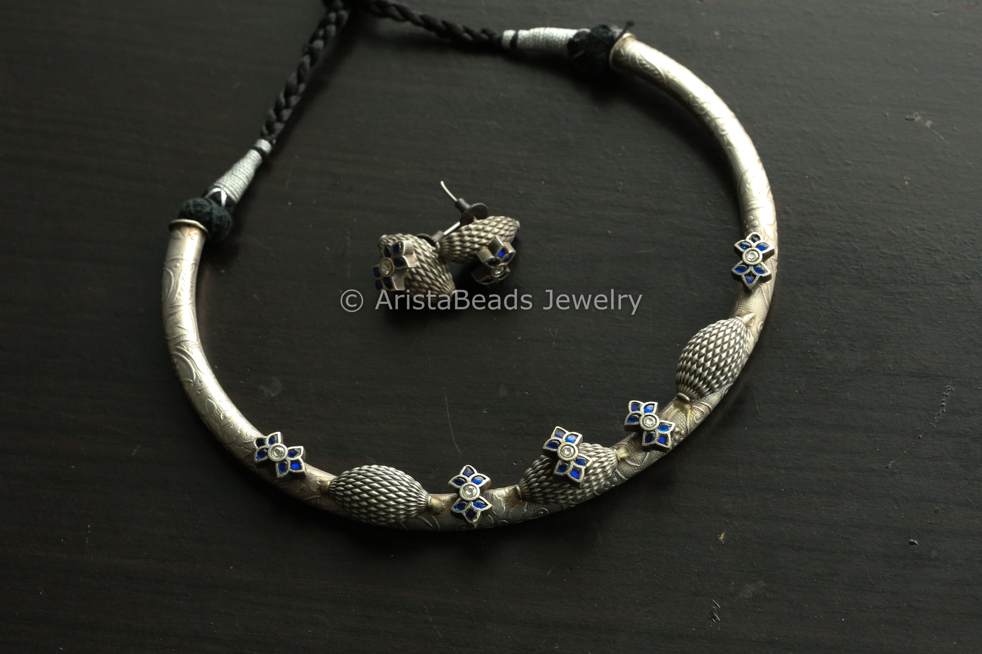 Jadau Silve Finish Hasli Set - Blue