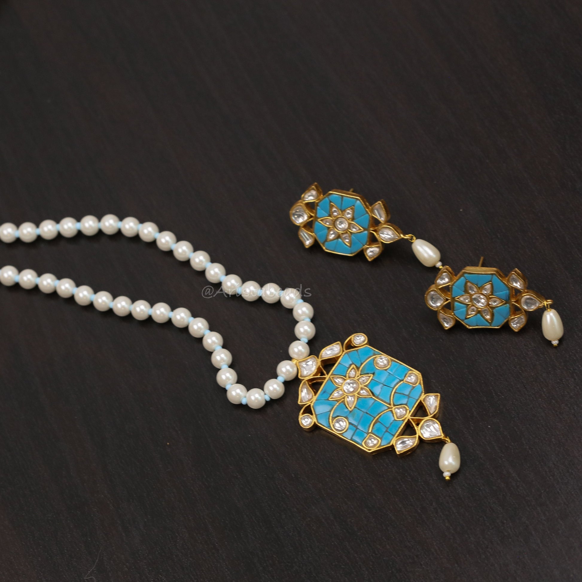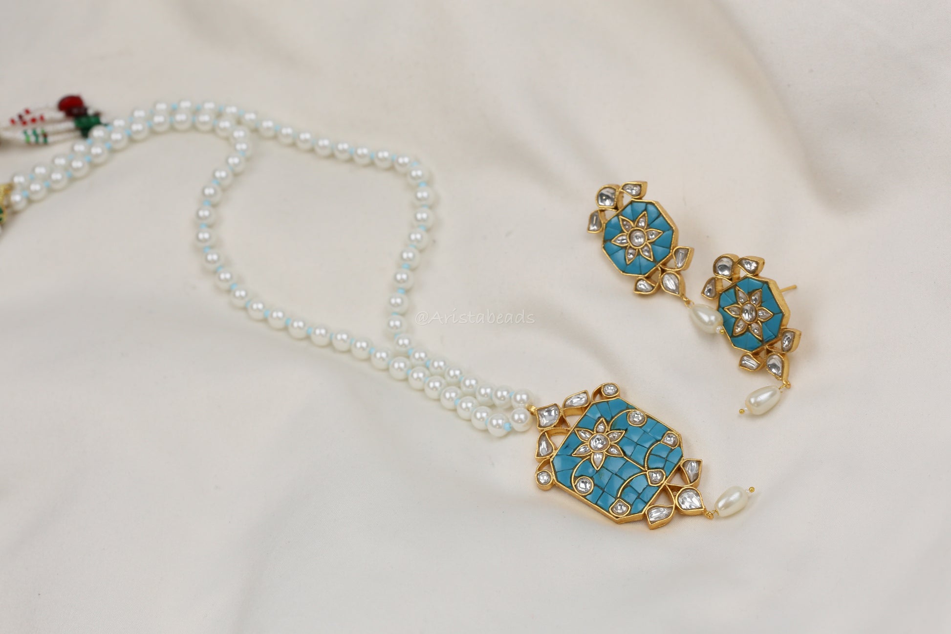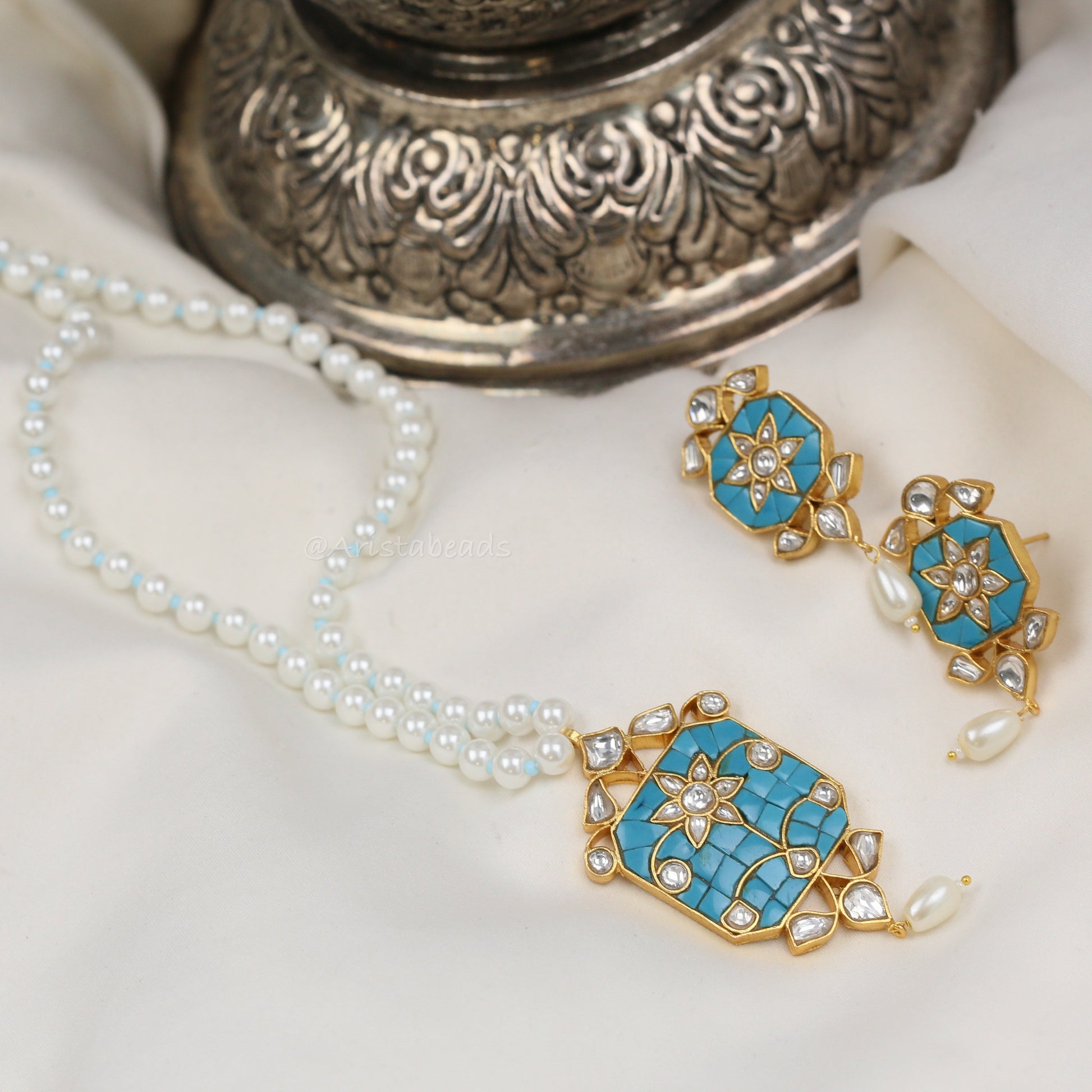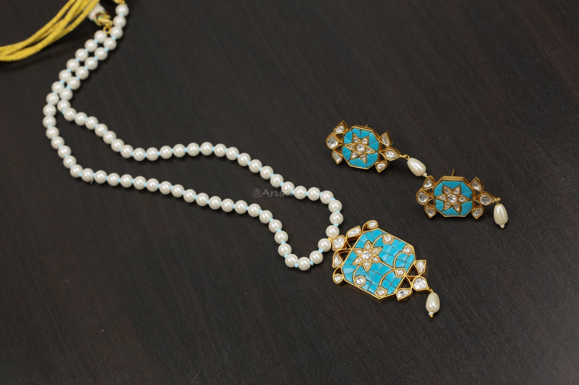 Jadau Takkar Kundan Work Necklace Set (104-13) - Turquoise