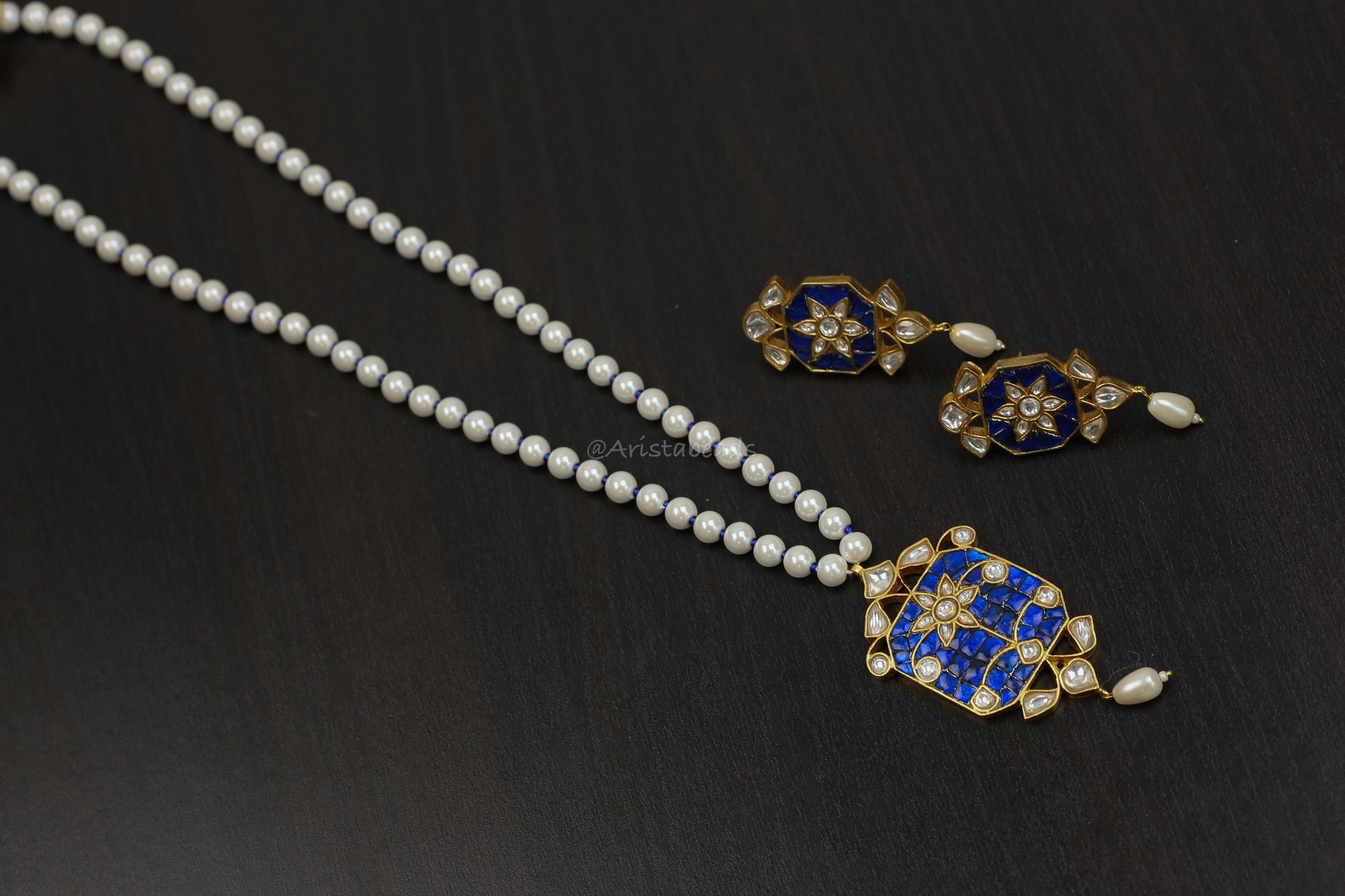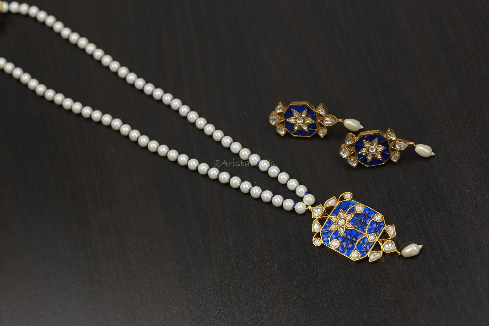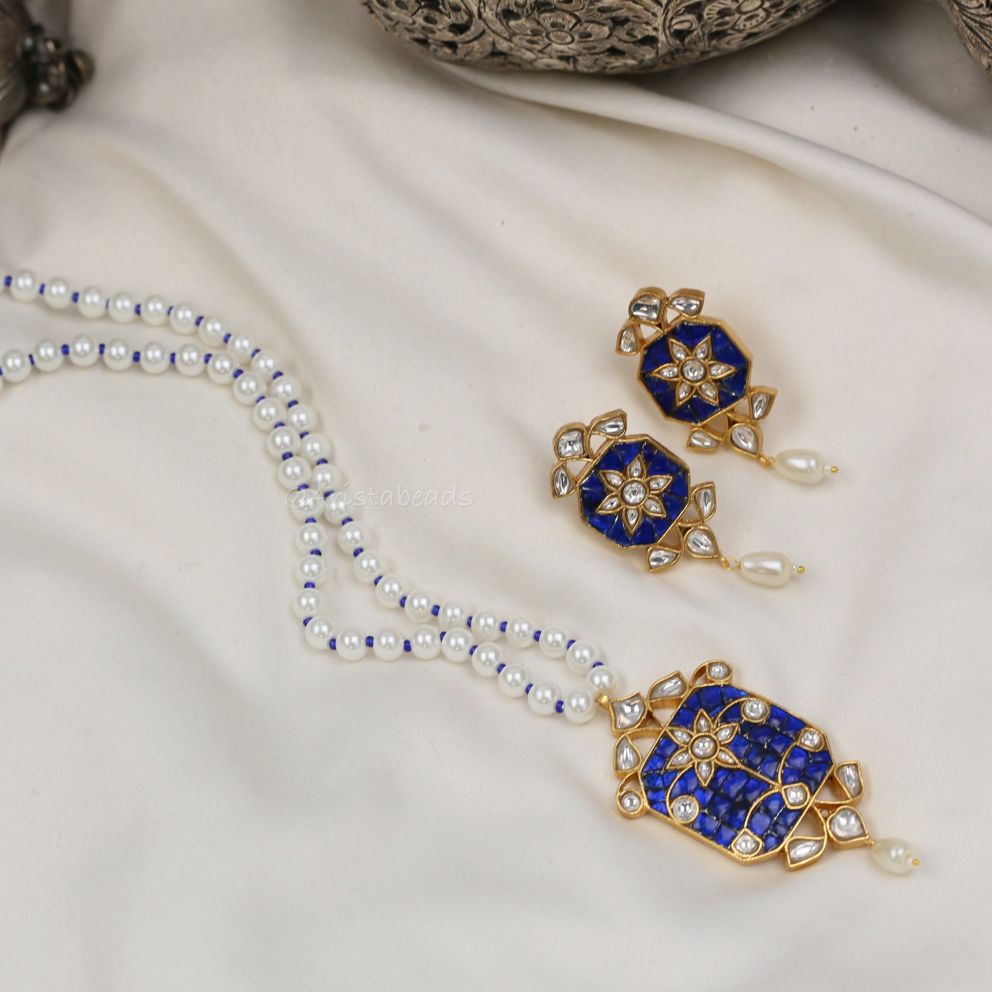 Jadau Takkar Kundan Work Necklace Set (104-14) - Blue