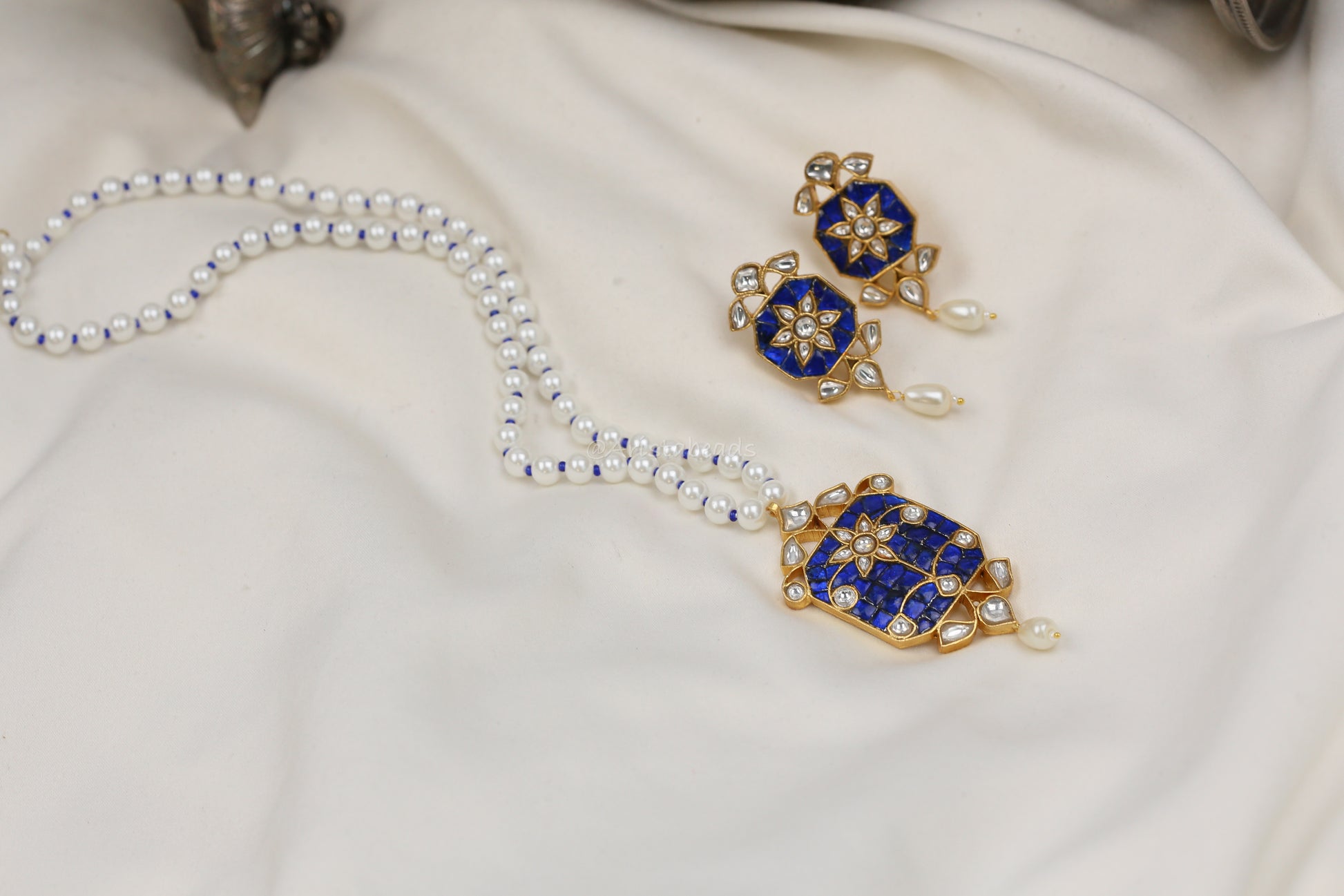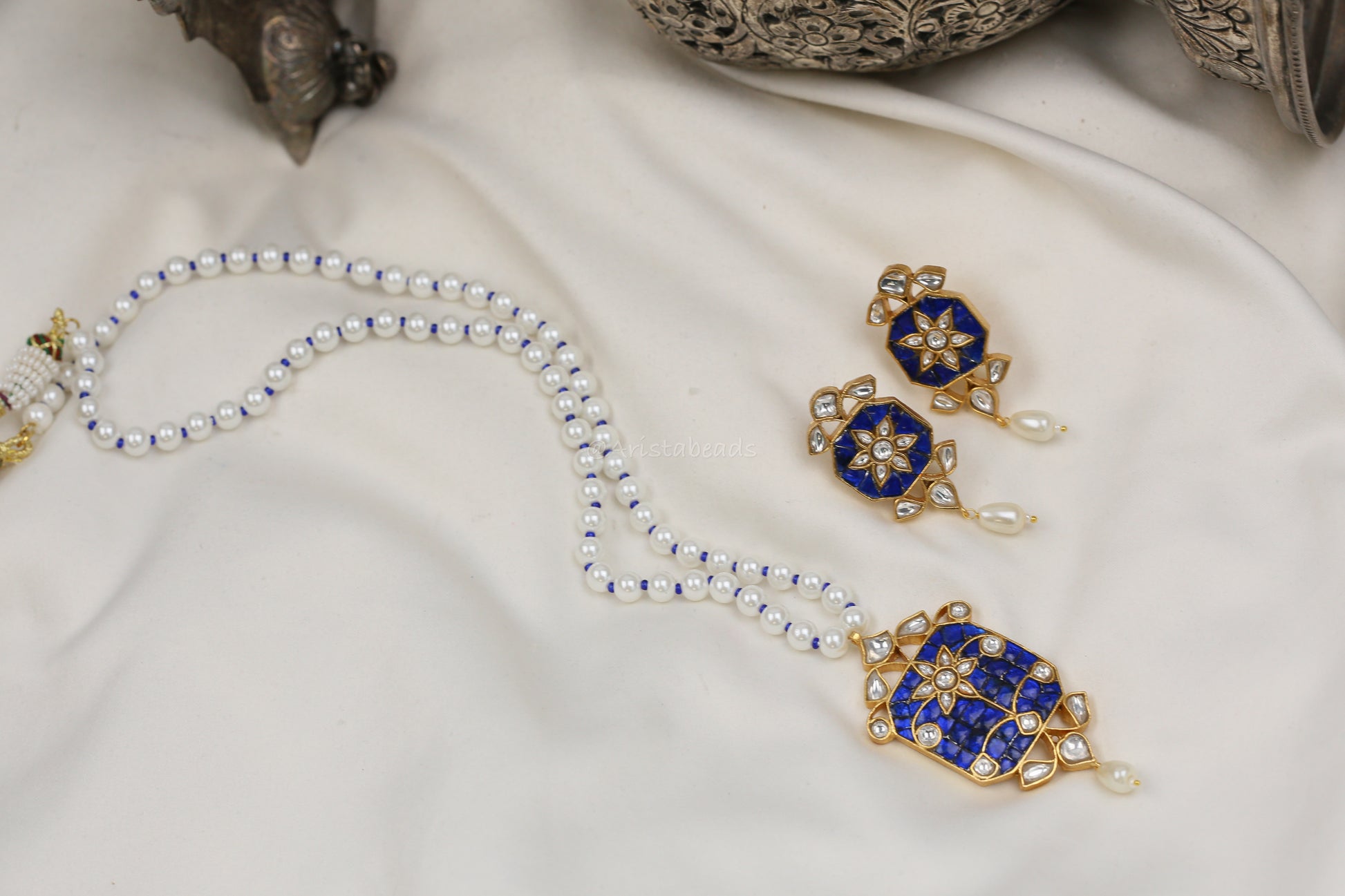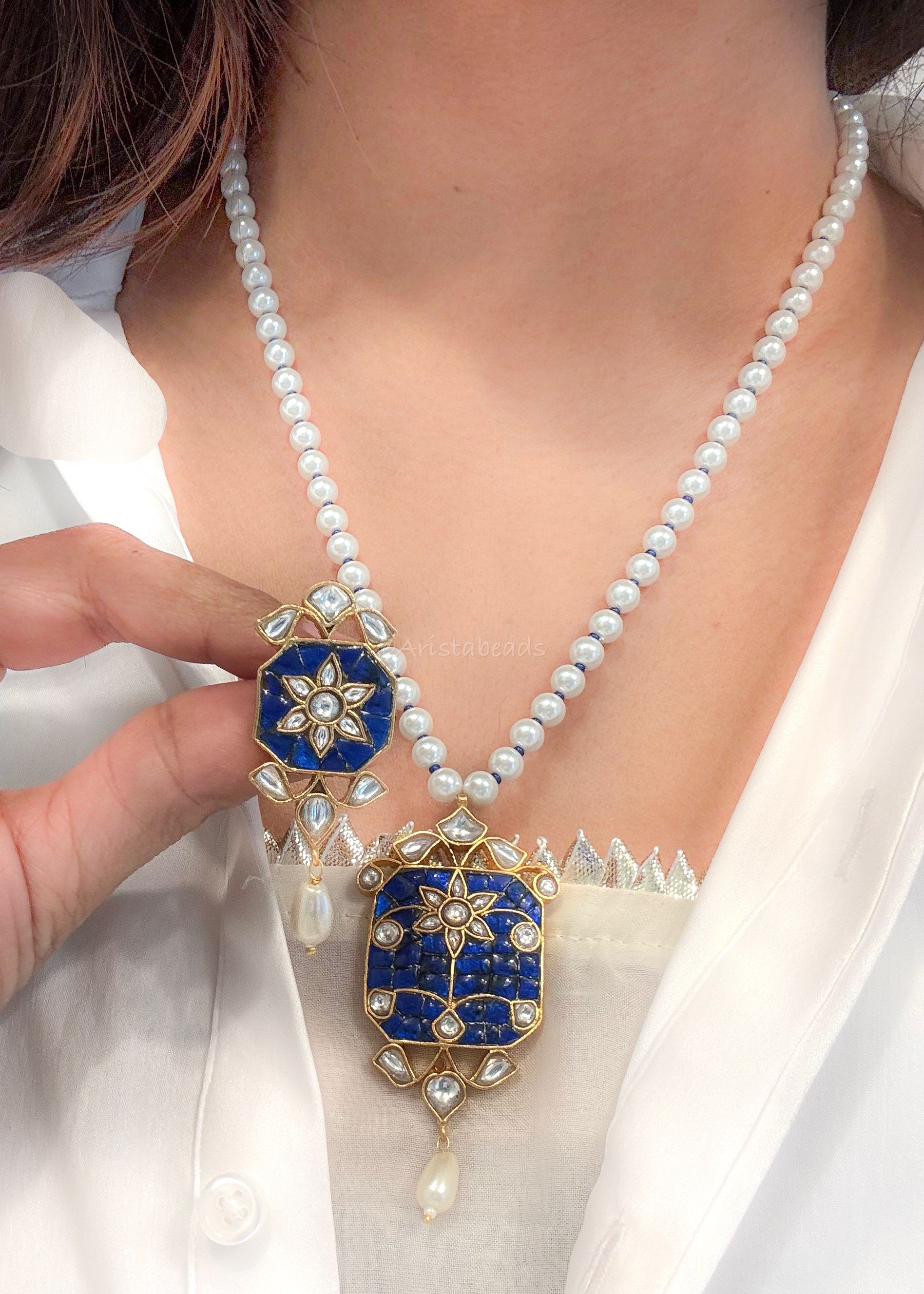 Jadau Takkar Kundan Work Necklace Set (104-14) - Blue
