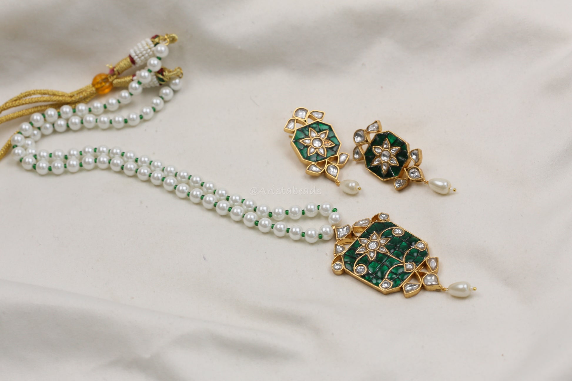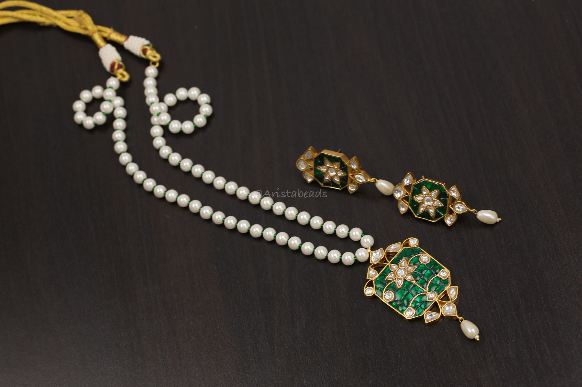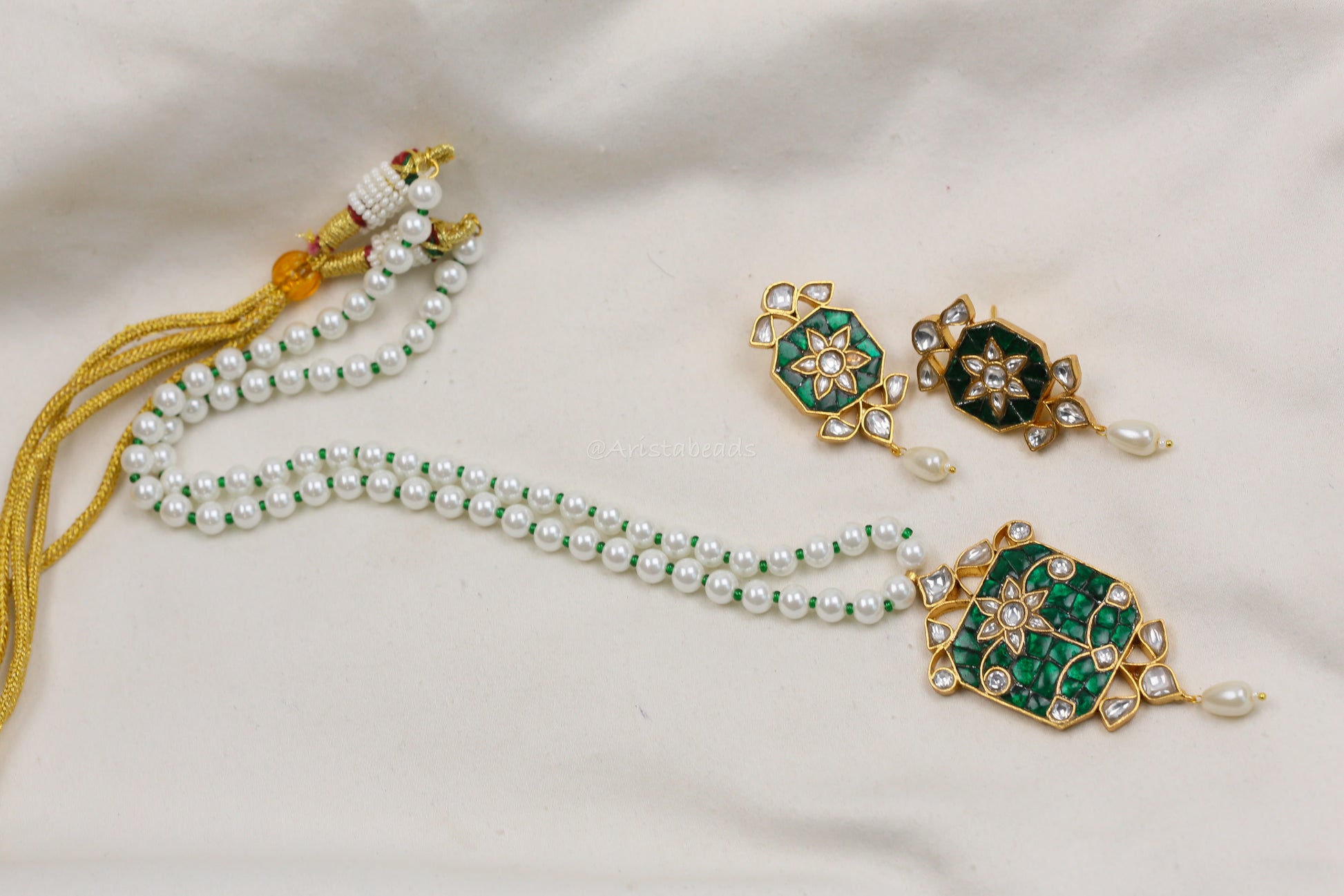 Jadau Takkar Kundan Work Necklace Set (104-16)- Green