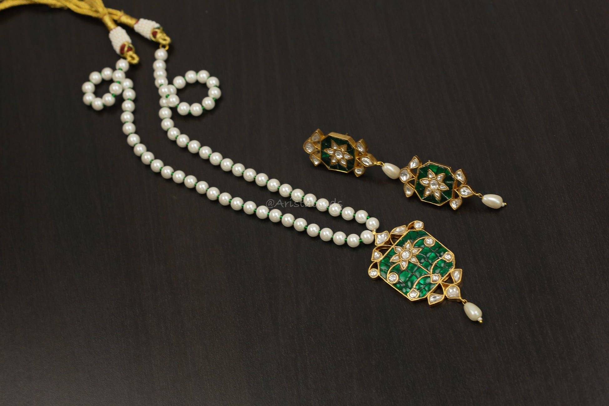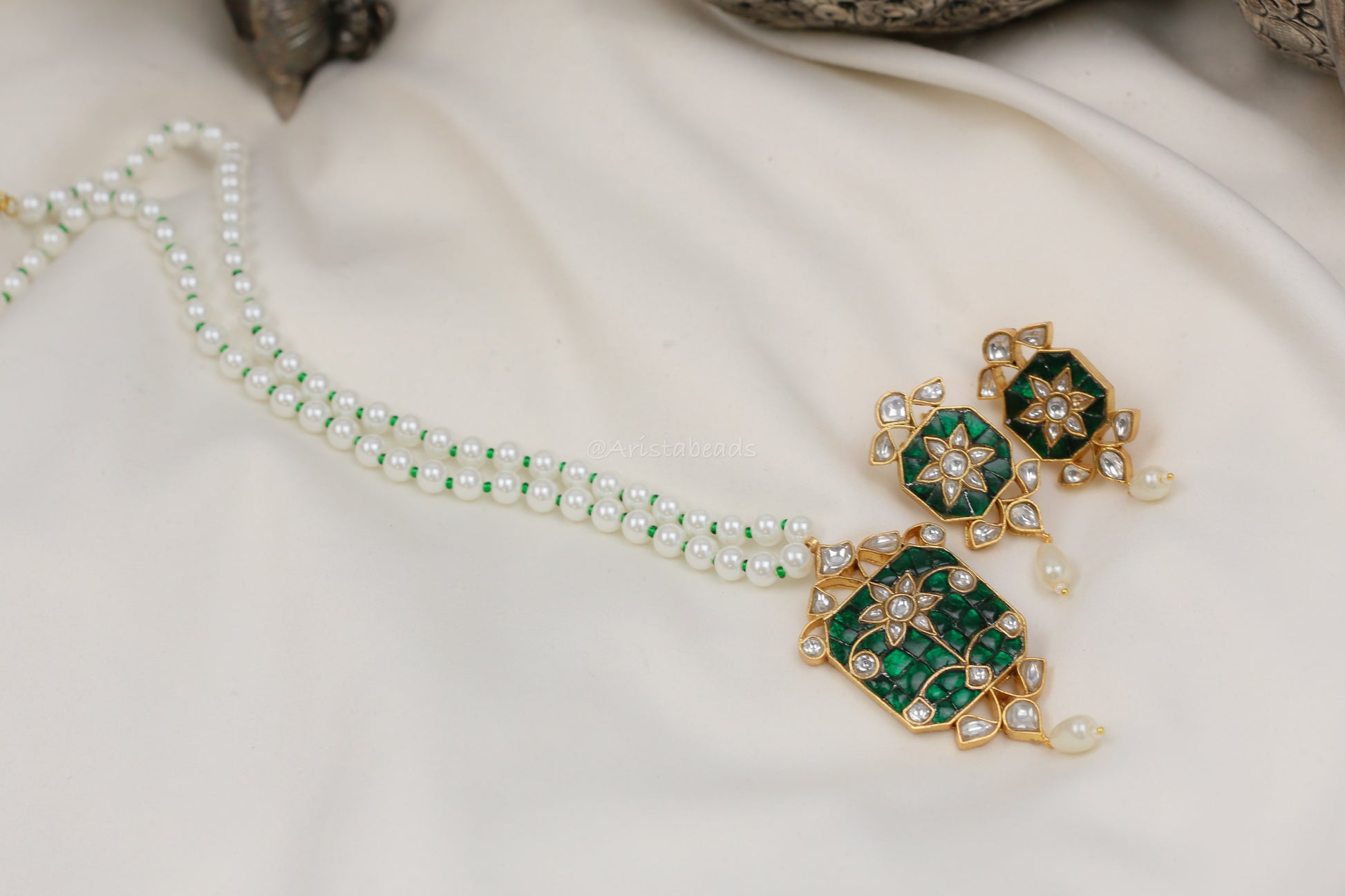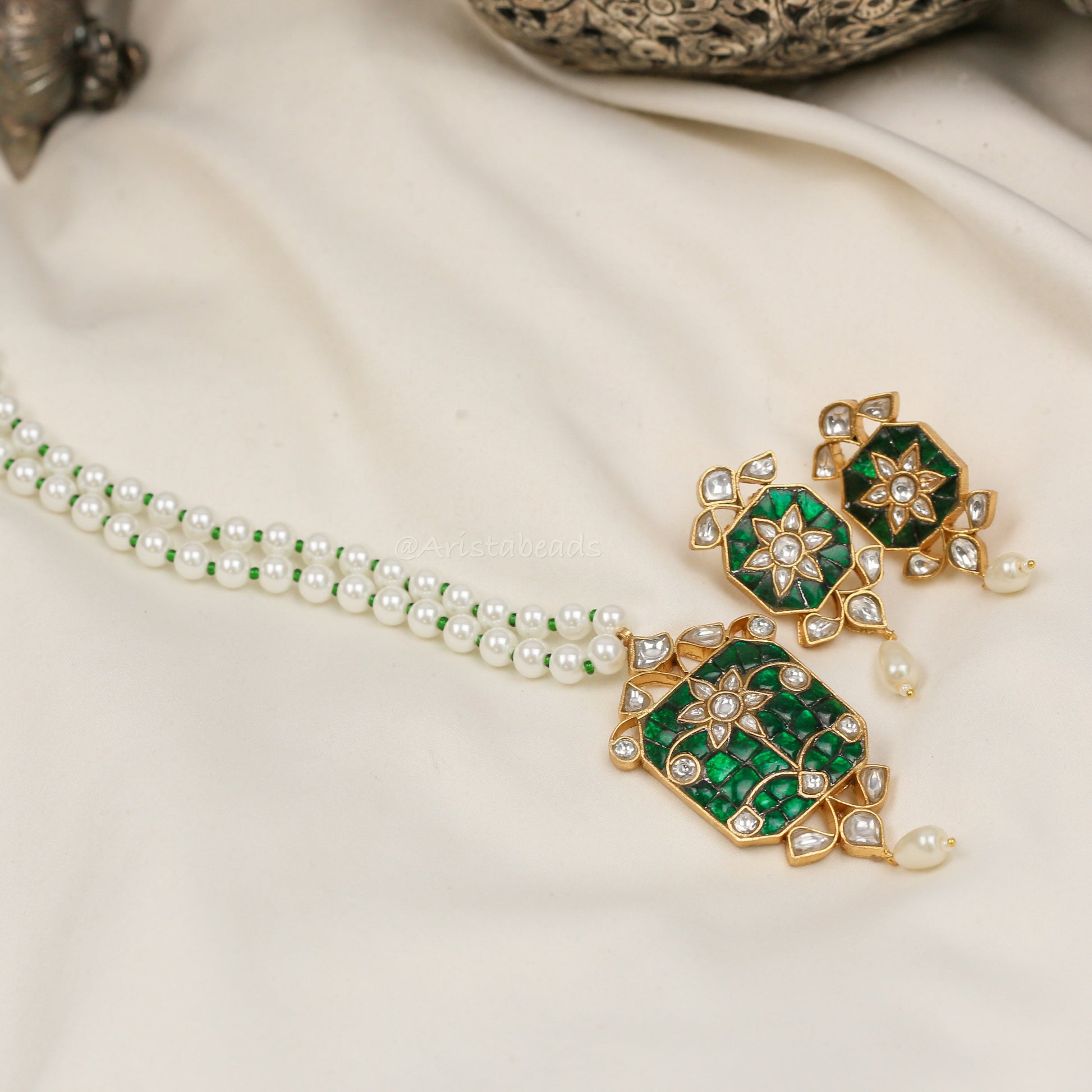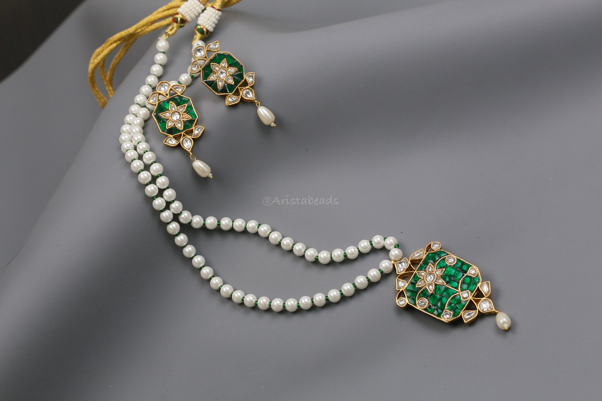 Jadau Takkar Kundan Work Necklace Set (104-16)- Green