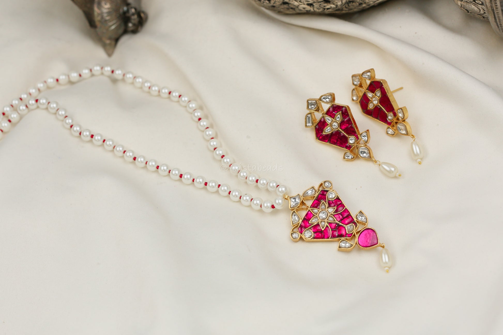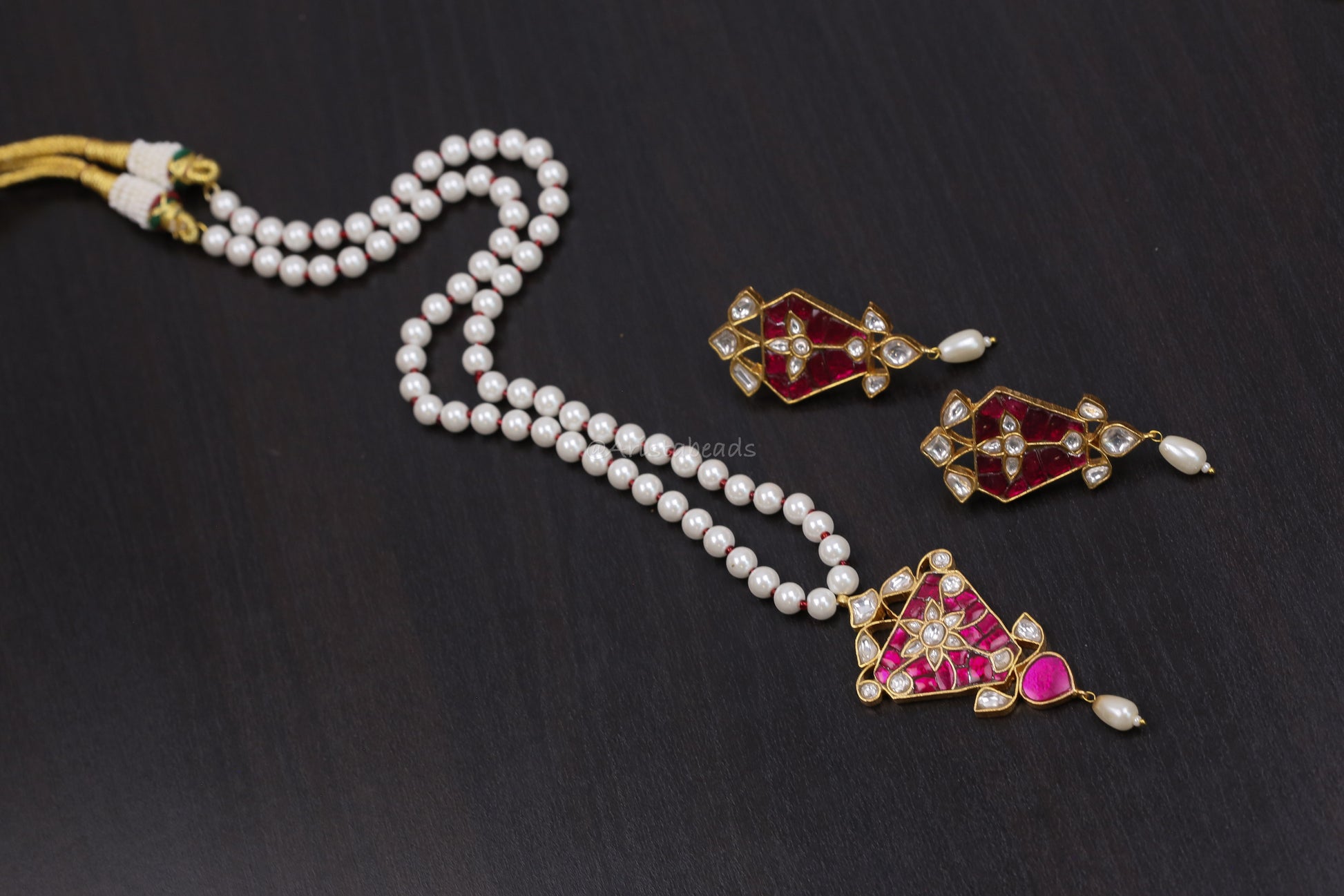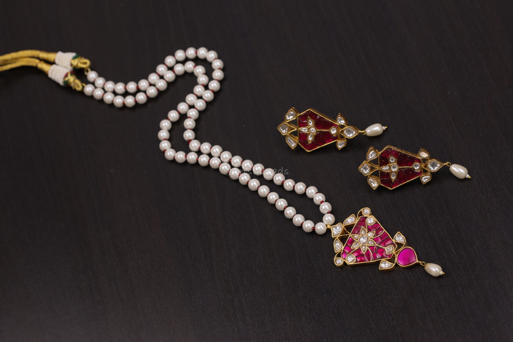 Jadau Takkar Kundan Work Necklace Set (104-18)- Ruby