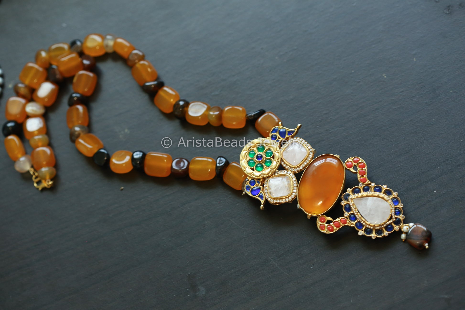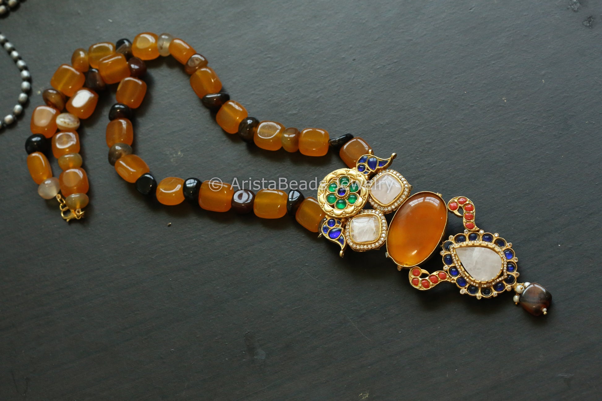 Kundan Jadau Fusion Necklace - Carnelian & Rose Quartz