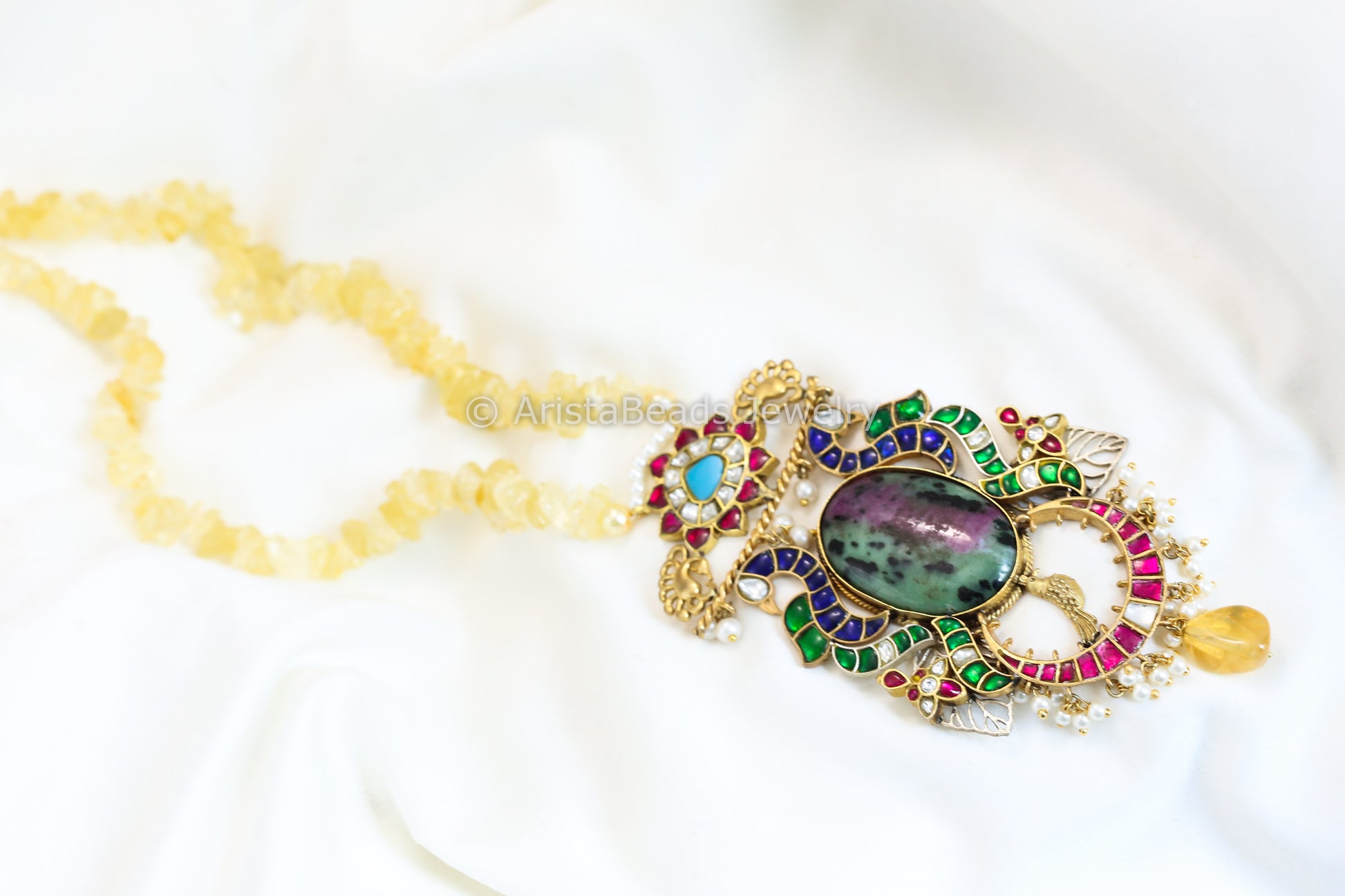 Kundan Jadau Fusion Necklace - Citrine Beads