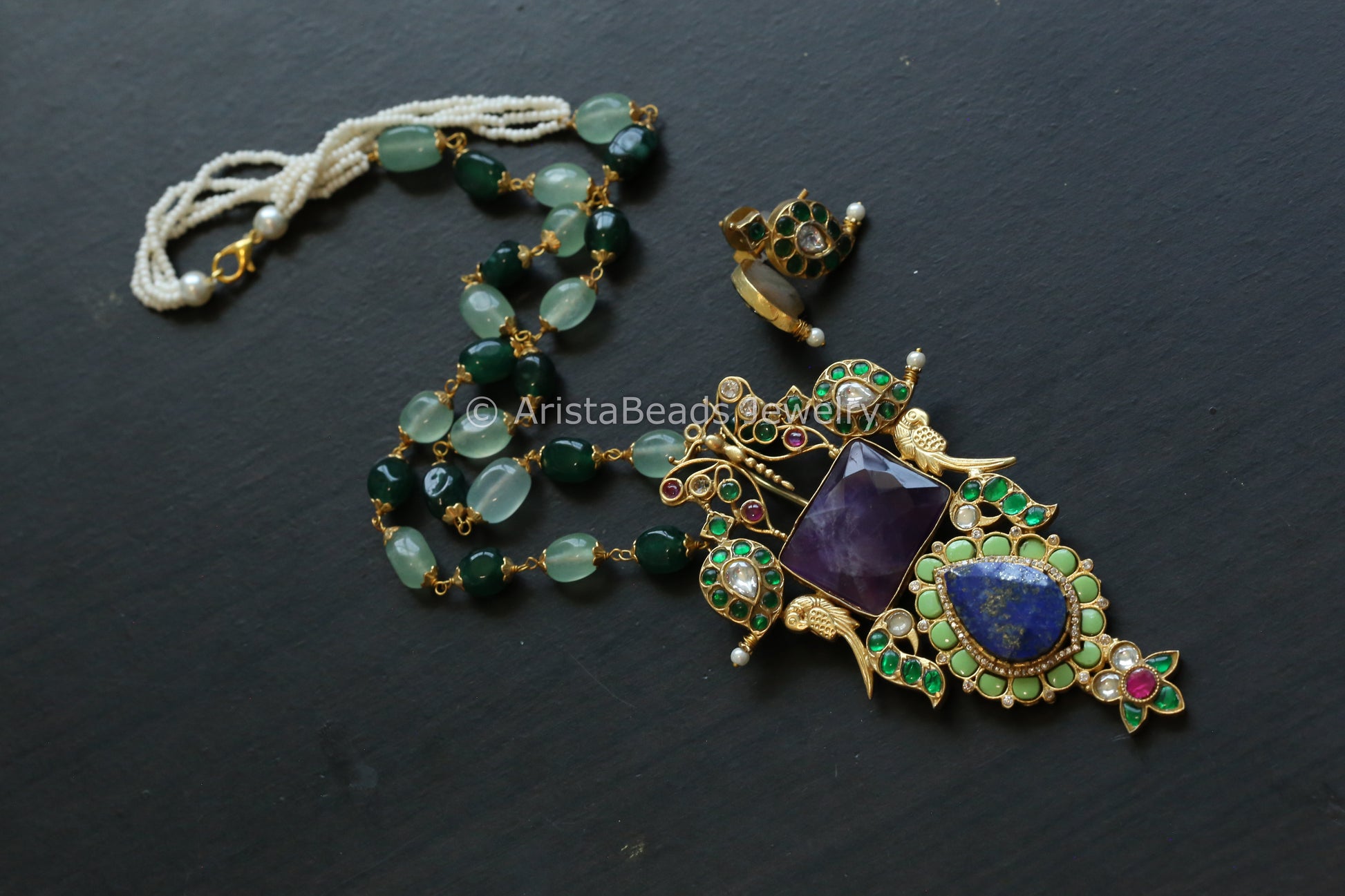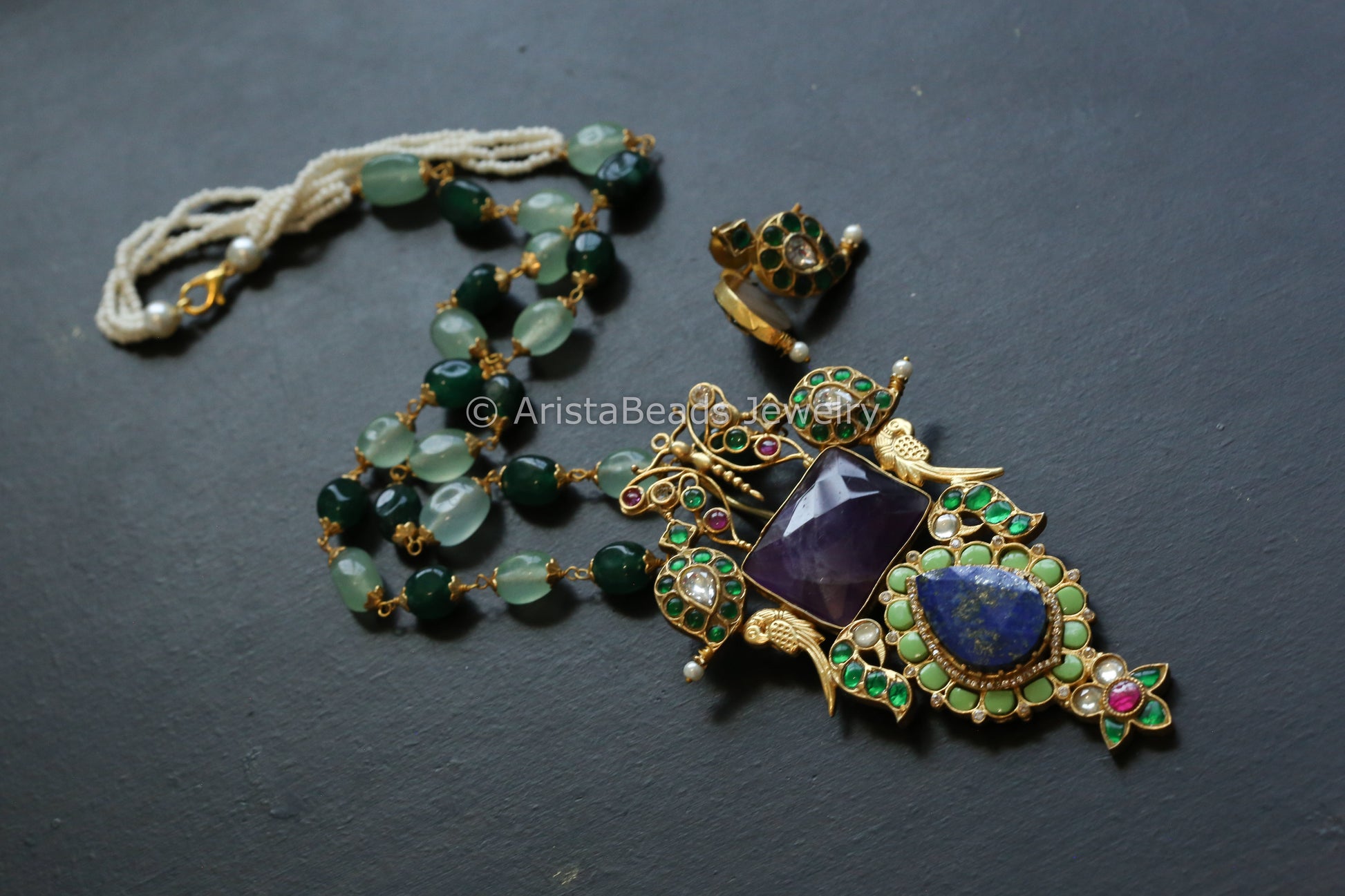 Kundan Jadau Fusion Necklace Set - Amethyst