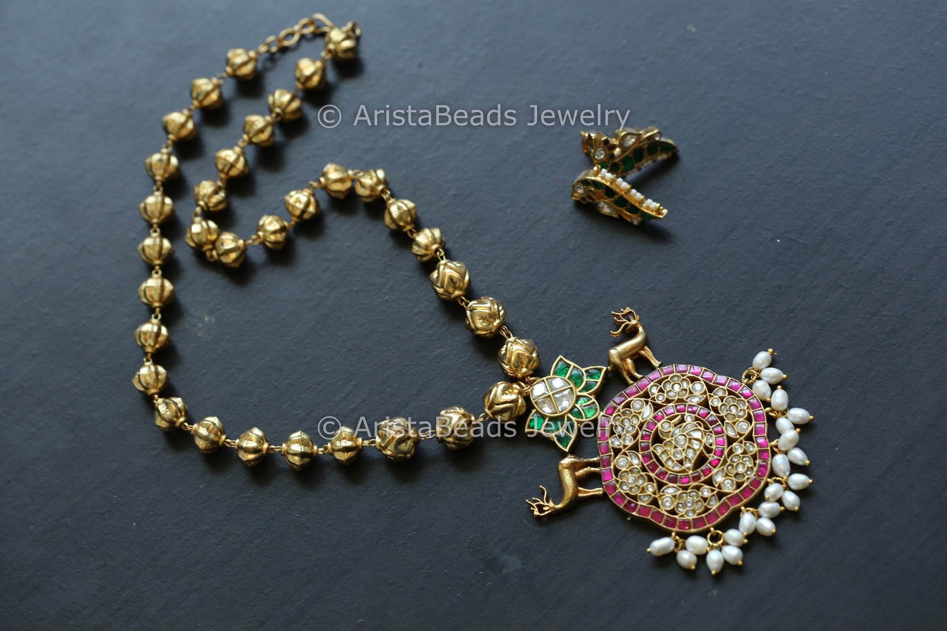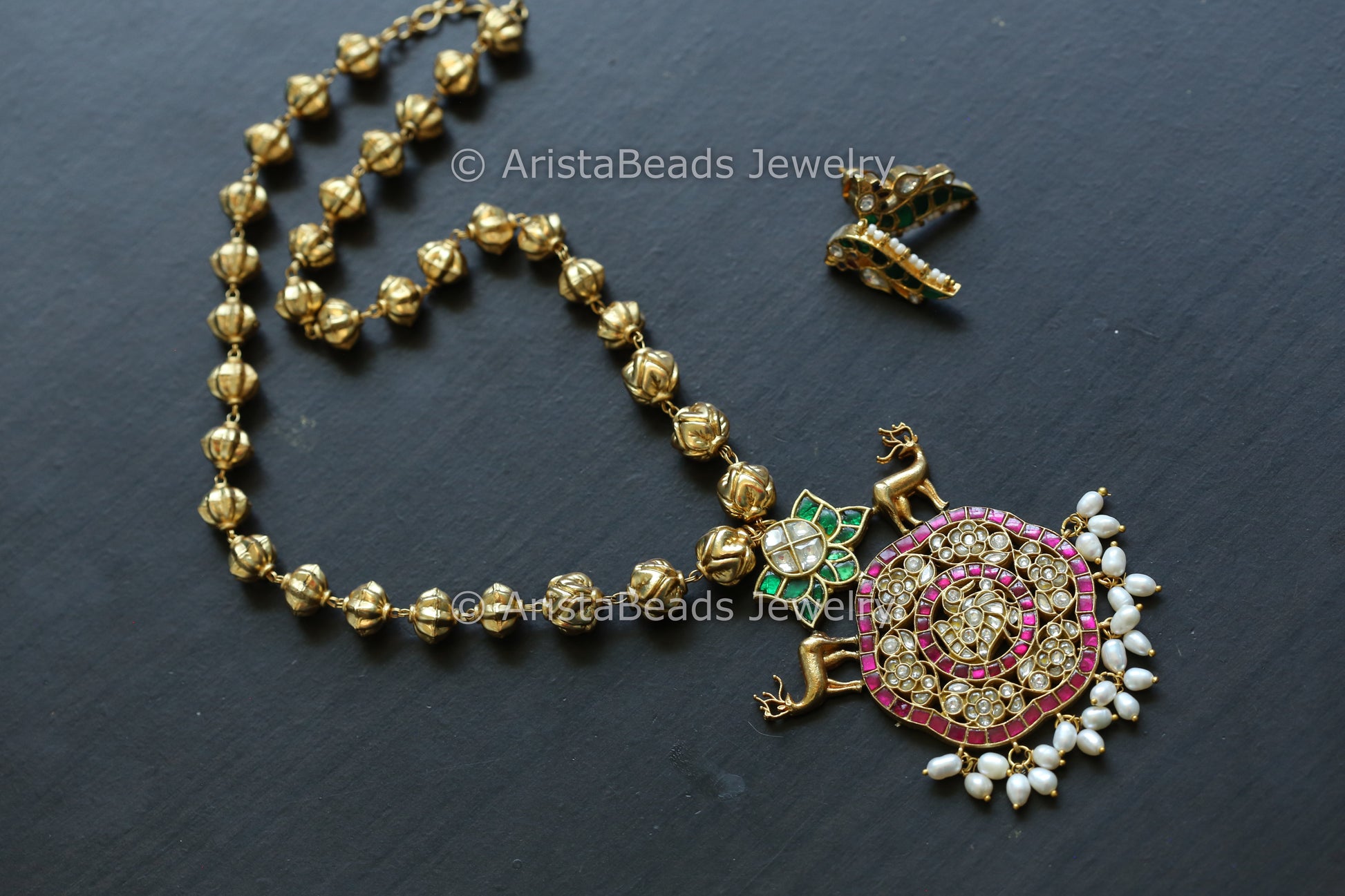Kundan Jadau Fusion Necklace Set In Nakshi Beads