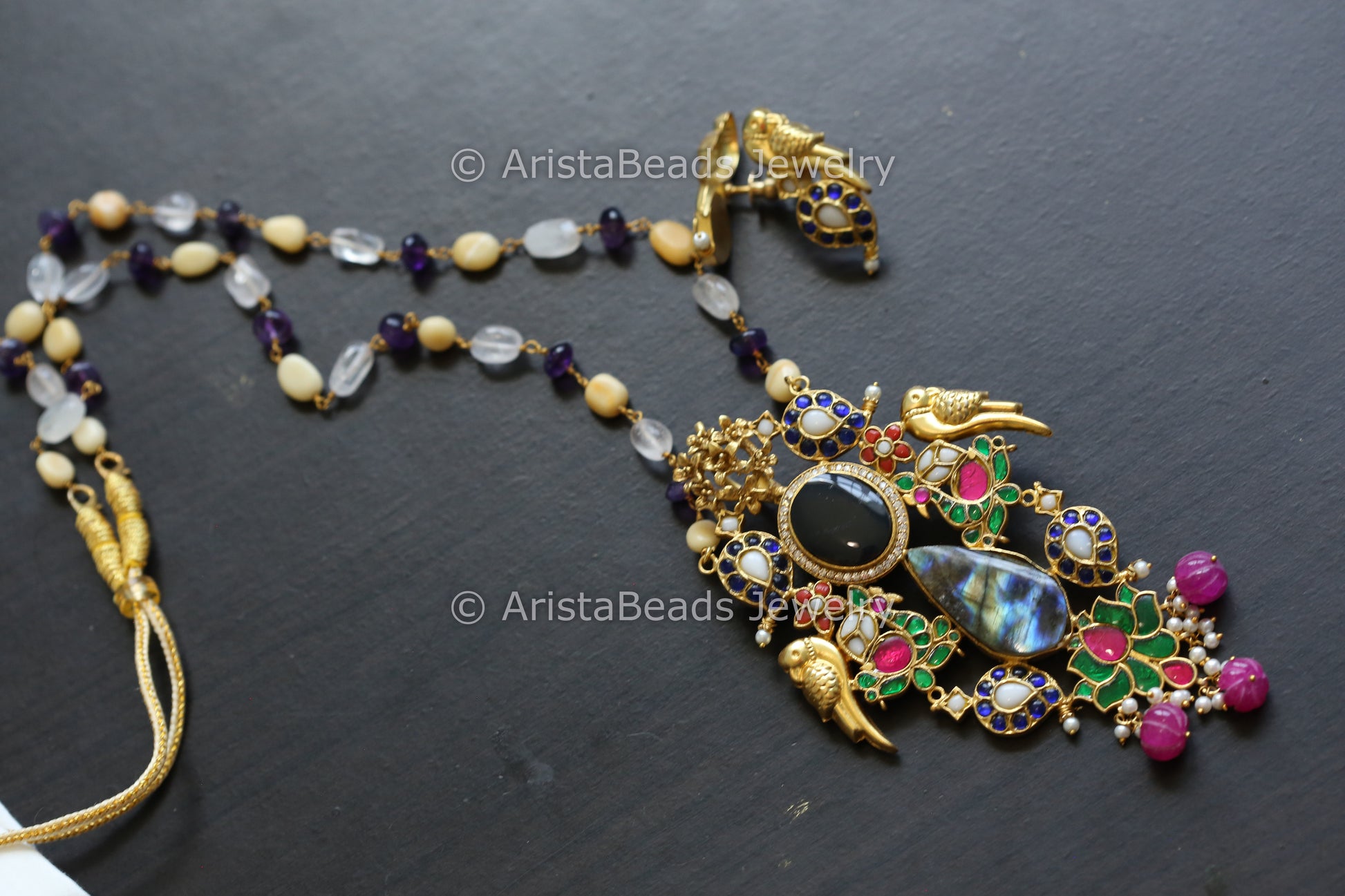 Kundan Jadau Fusion Necklace Set - Labradorite