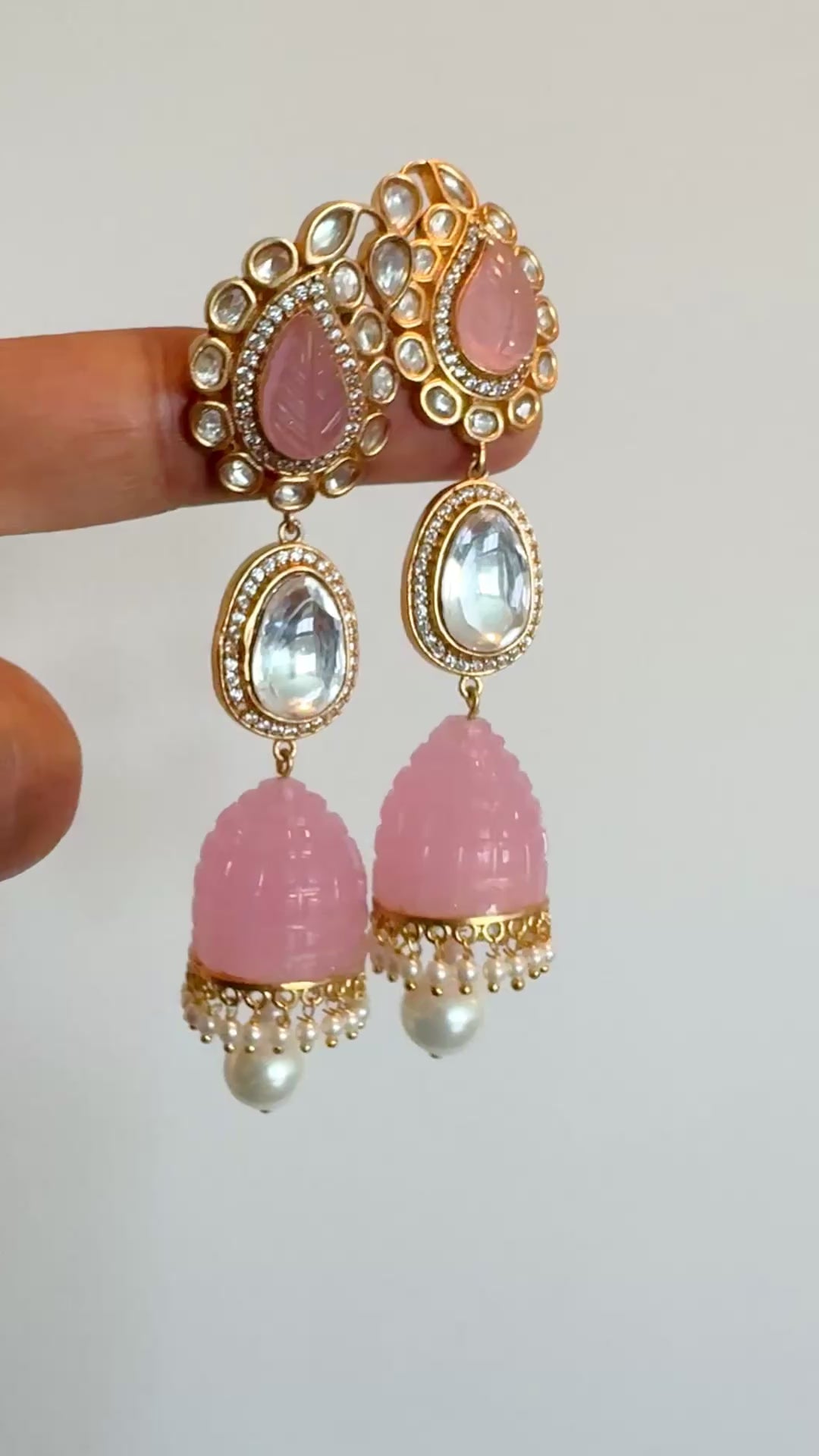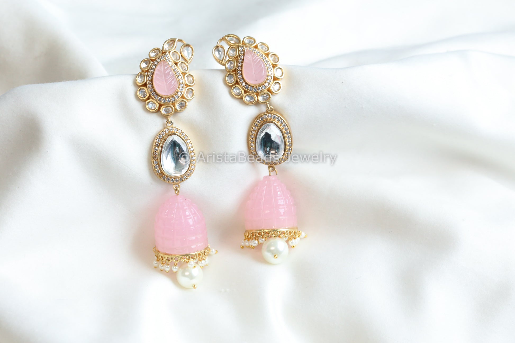 Kundan Paisley Carved Stone Jhumka (101-17)