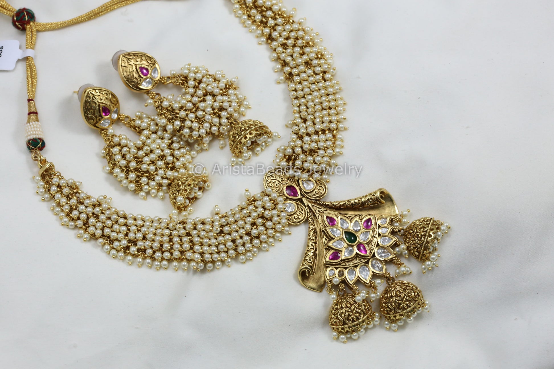 Kundan & Pearl Guttapusalu Necklace Set - Multi