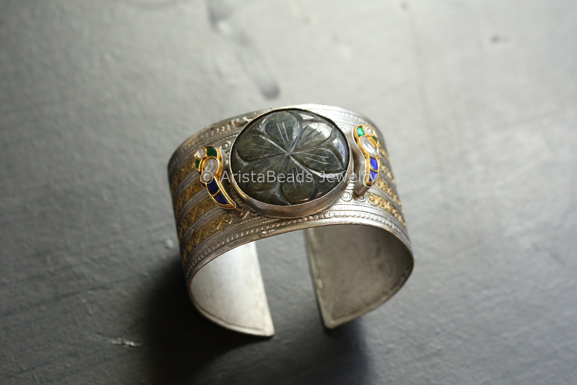 Labradorite Dual Tone Jadau Fusion Bracelet (ABJ-B101-17)