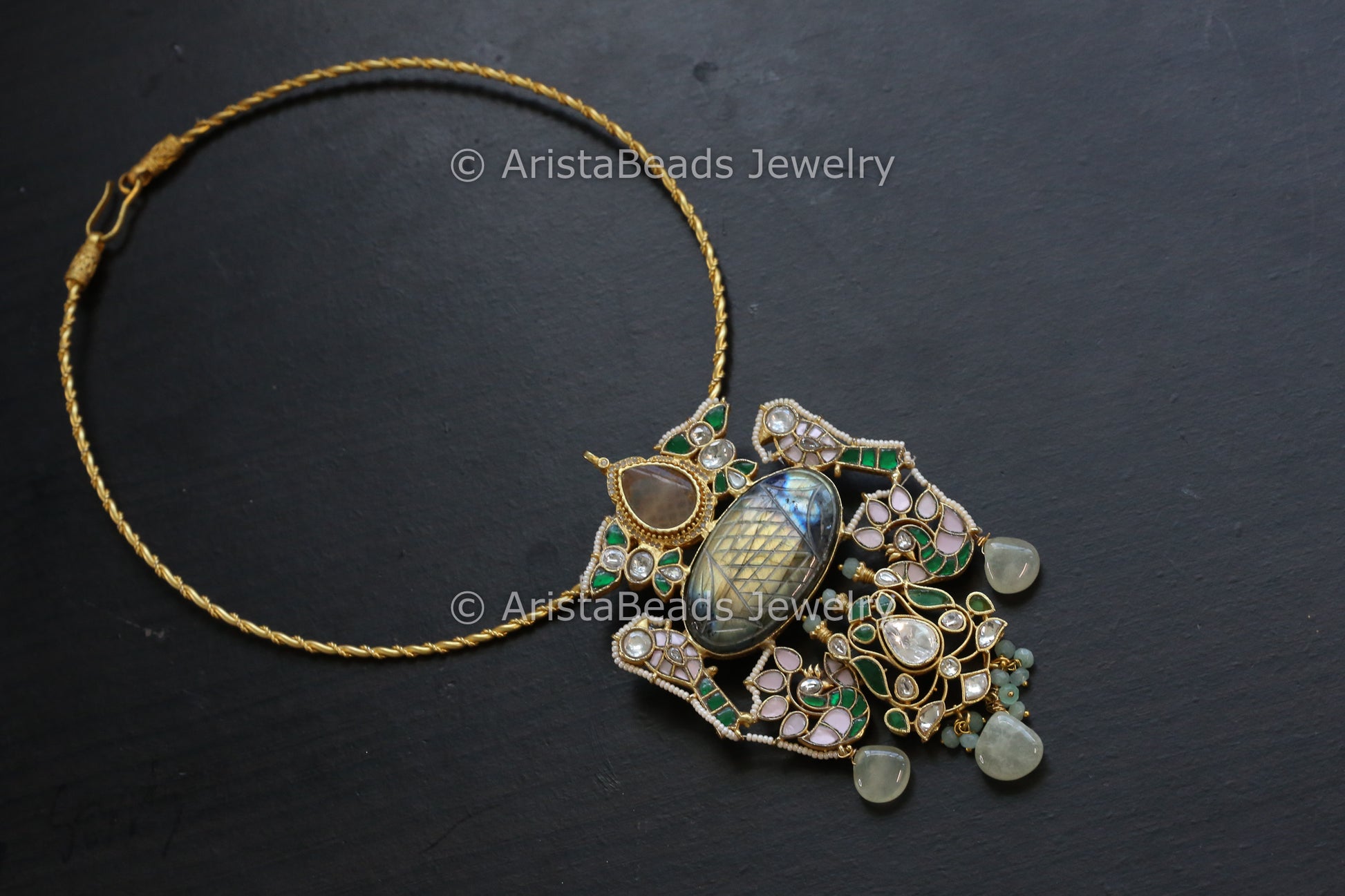 Labradorite Fusion Jadau Kundan Necklace Set (ABJ-N101-16)