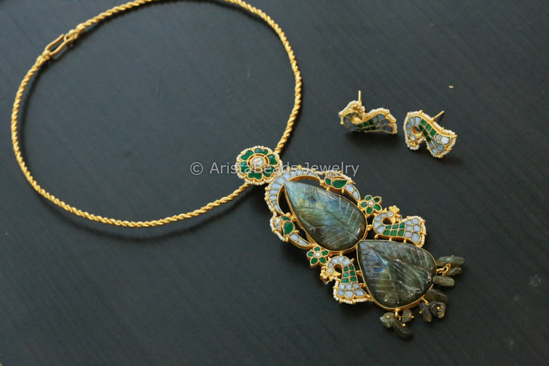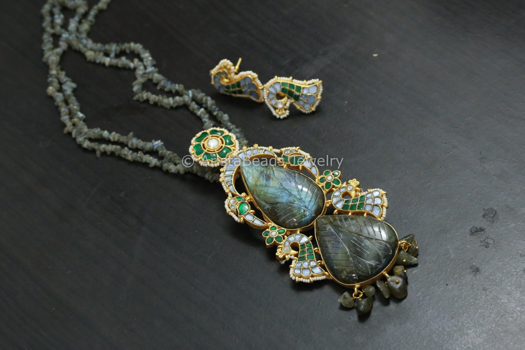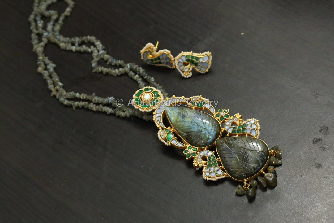Labradorite & Kundan Fusion Pendant Set (Removable)