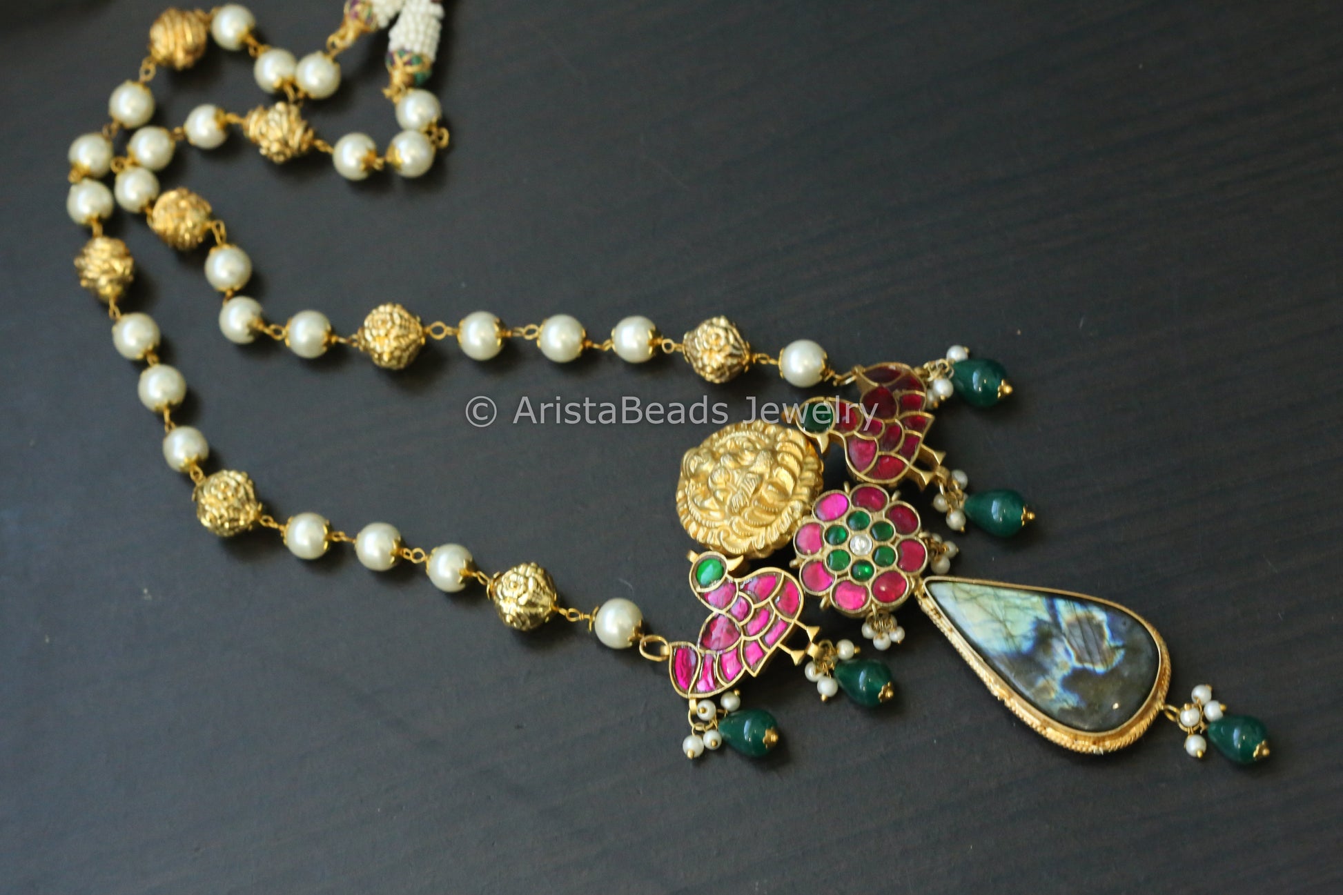 Labradorite Stone Cab & Kundan Fusion Necklace