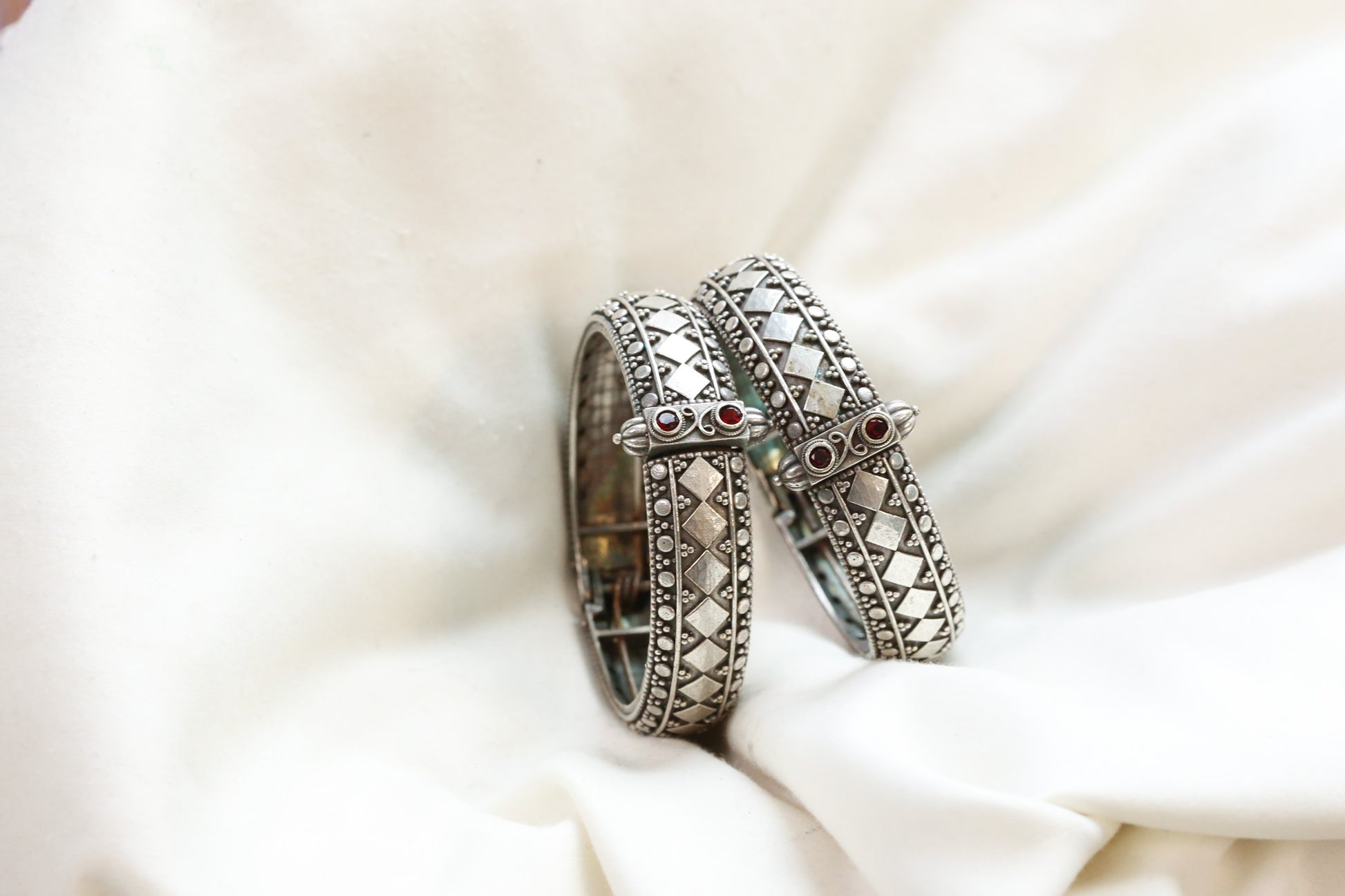 Lalita Silver Looka Alike Bangle - Red