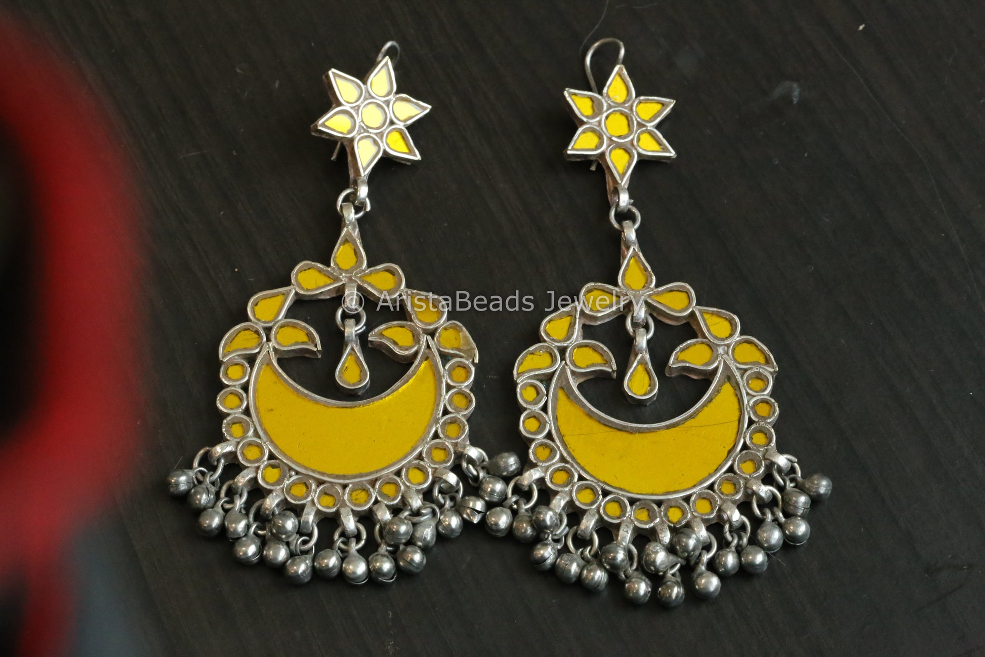 Large Real Glass Chandbaali - Yelllow