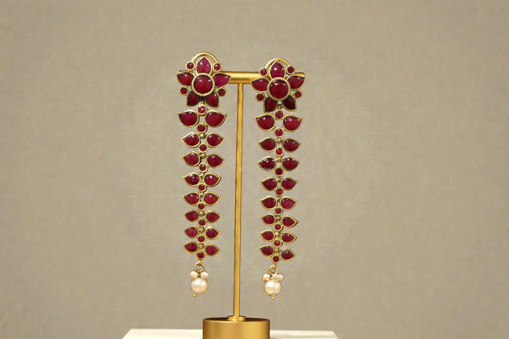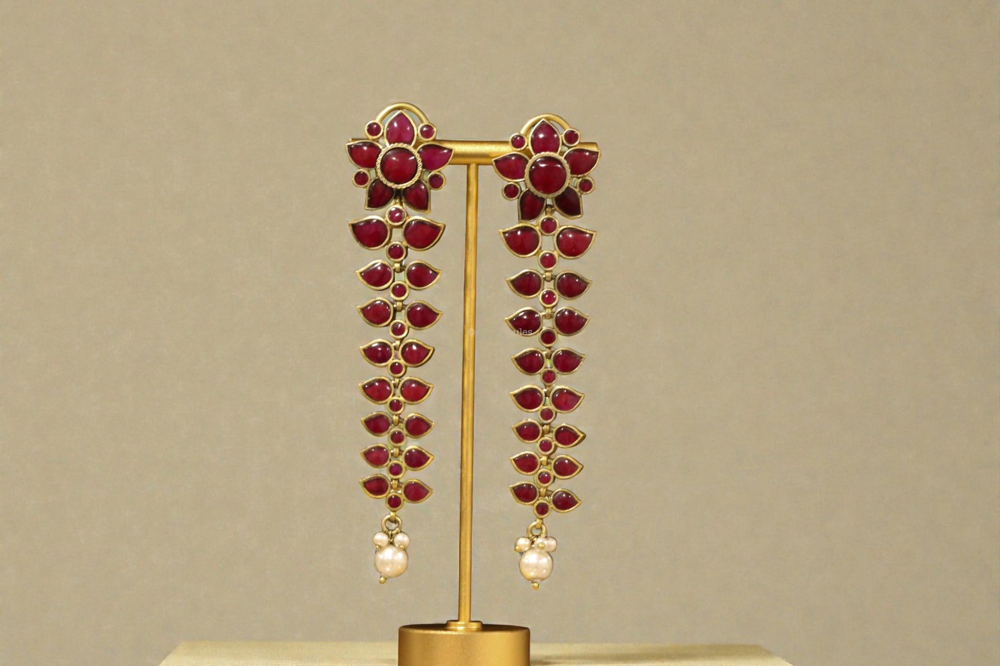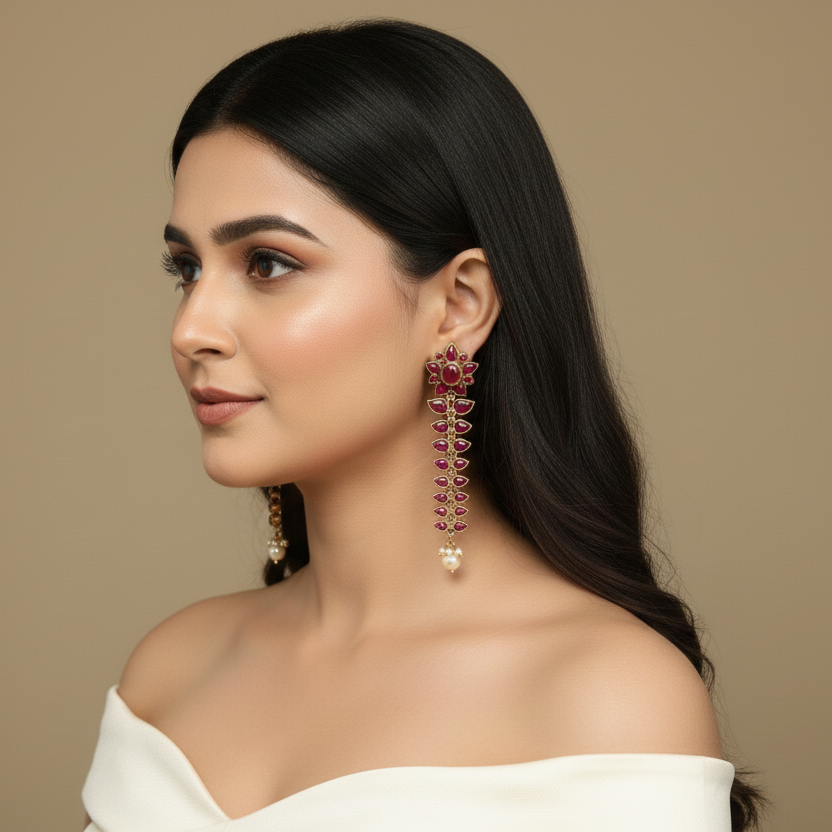 Long Nisha Vintage Polish Earrings - Ruby