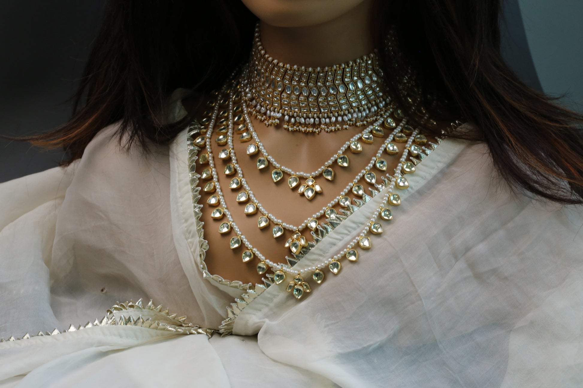 Maharani Vintage Look Kundan Necklace Set - 3 Line