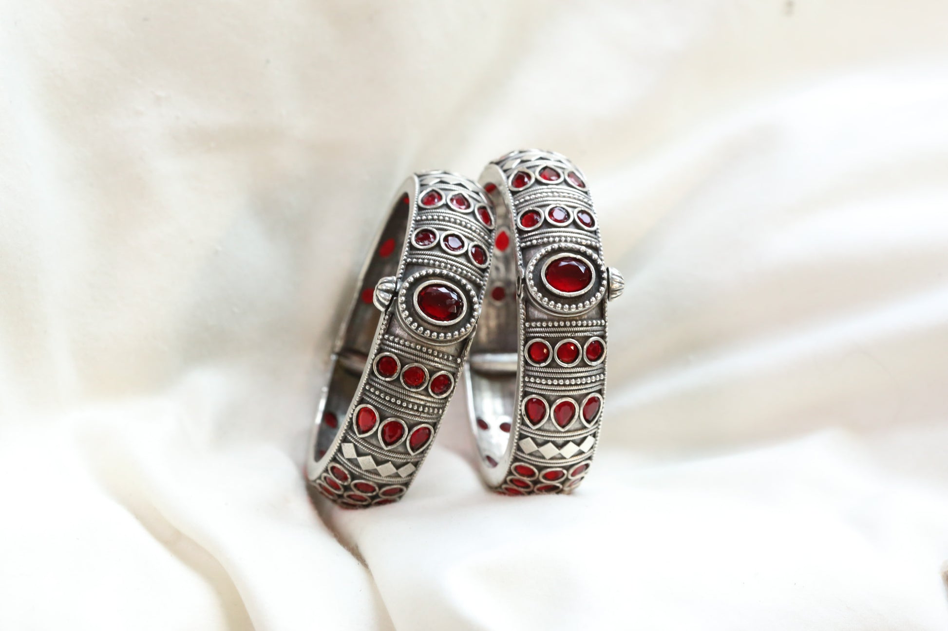 Mahi Silver Looka Alike Bangle - Red