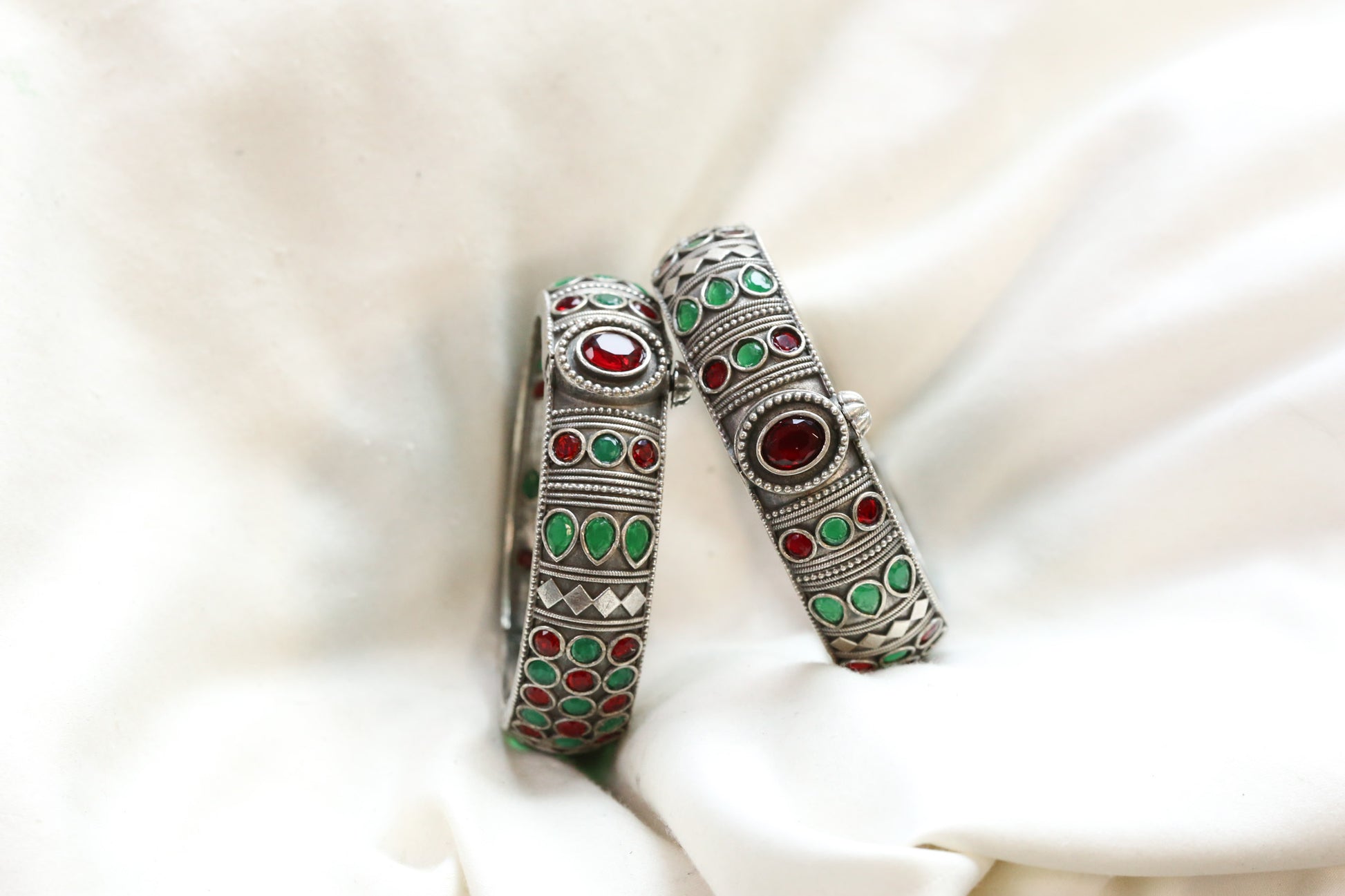 Mahi Silver Looka Alike Bangle - Green Red